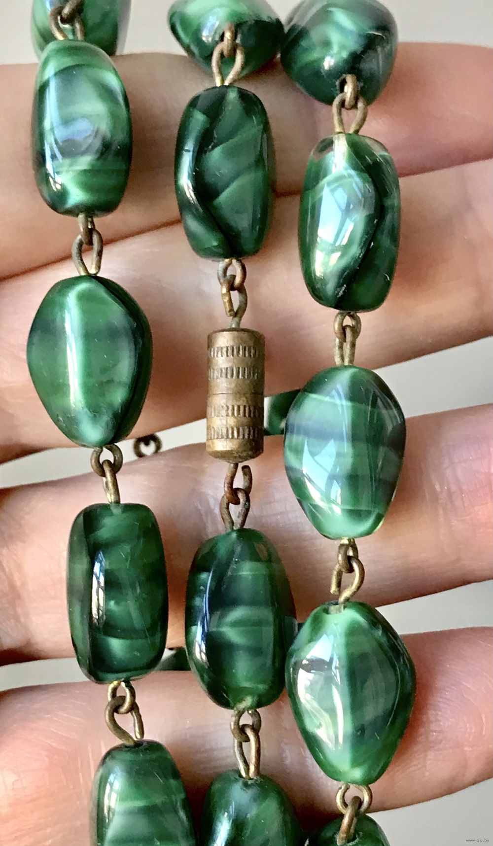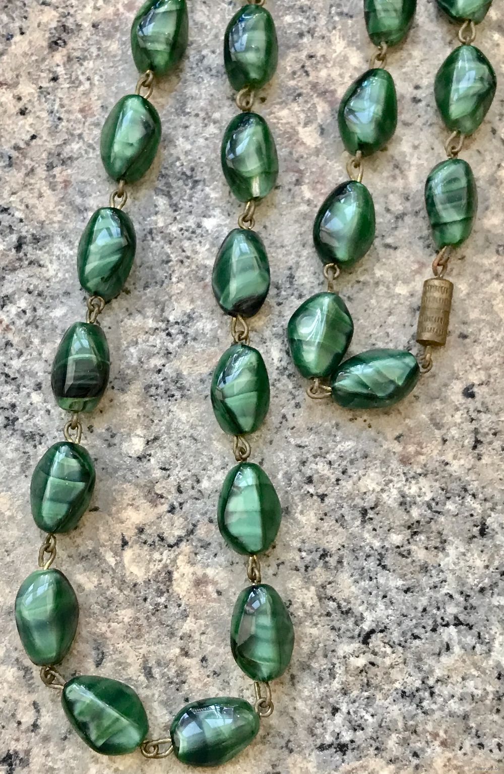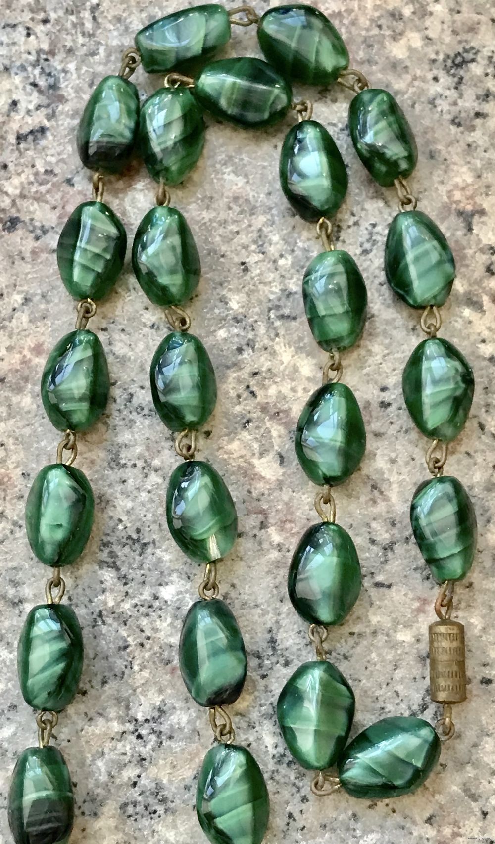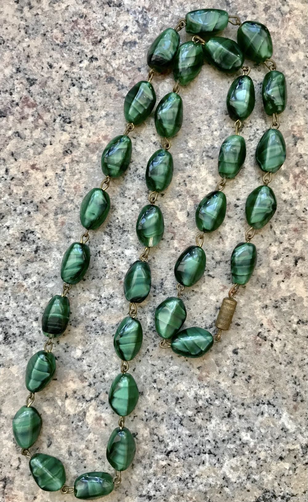 Винтажные чешские бусы из художественного стекла. Бусины соединены между собой пинами из латуни (на металле местами есть незначительные следы окисления). Длина 60см.