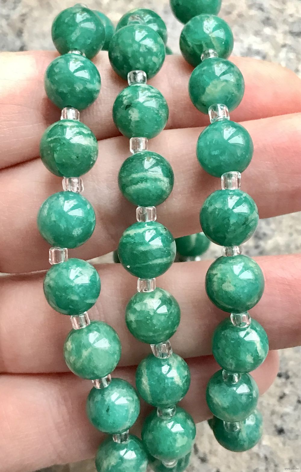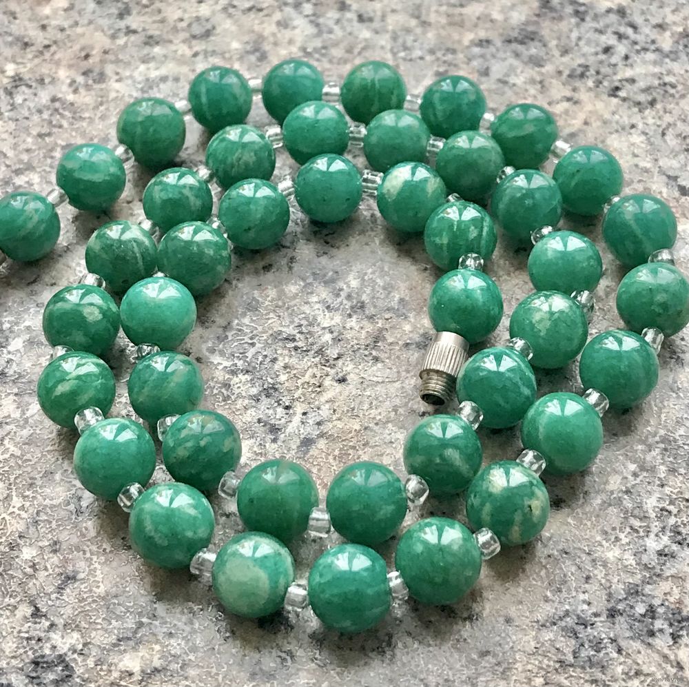 Винтажные бусы из амазонита. Длина 46см., диаметр бусины 0,8см. Состояние хорошее.