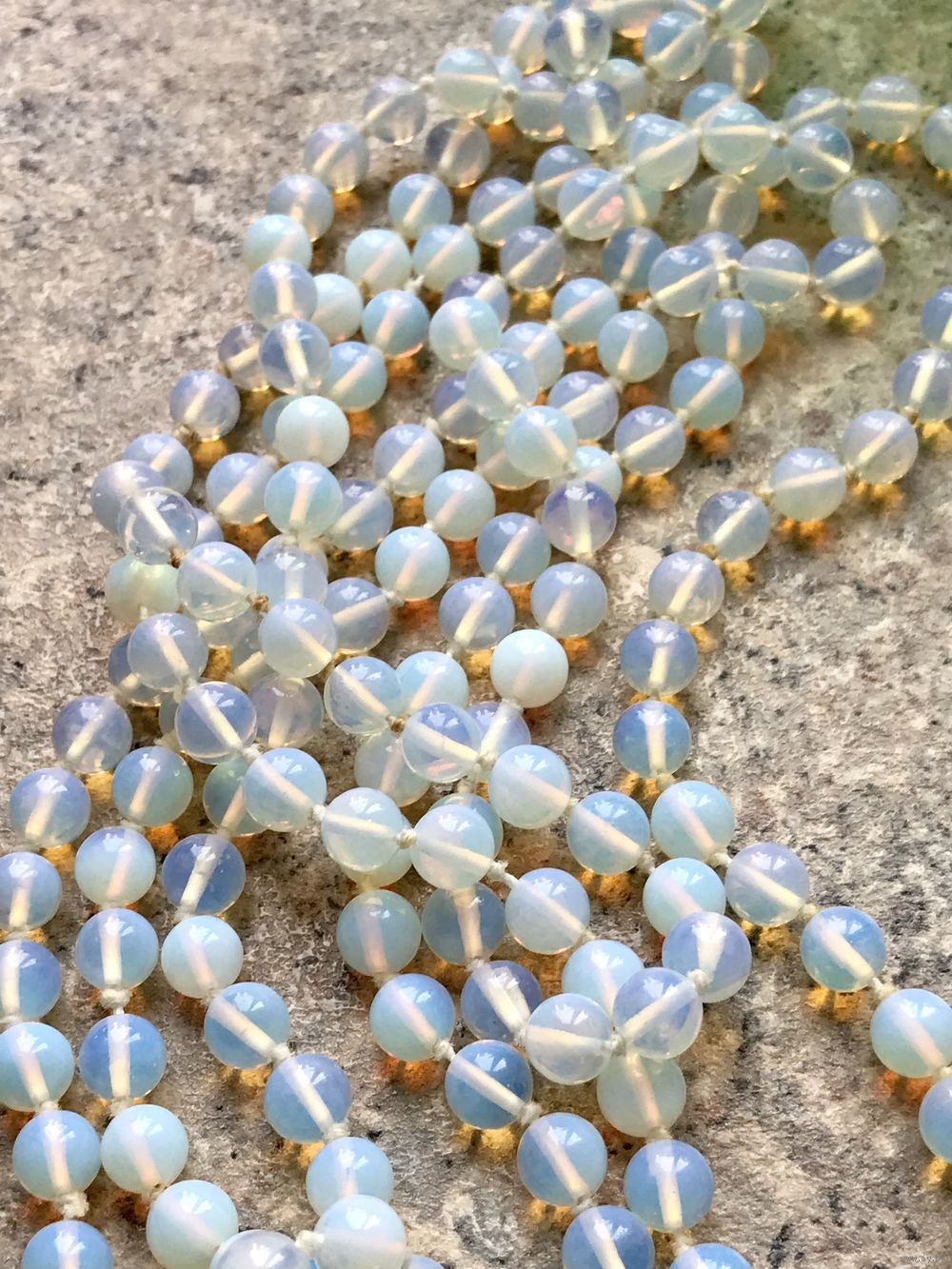 Винтажные бусы из стекла, имитирующего лунный камень. Длина 172см., неразъемные, диаметр бусин ~0,7-0,8см. Состояние хорошее.