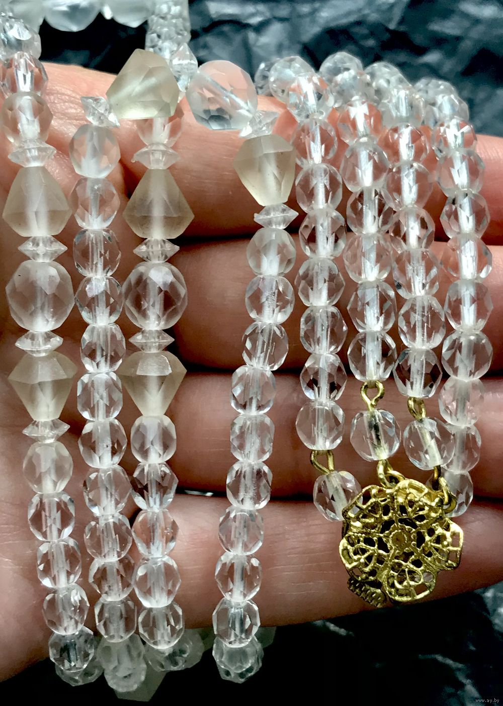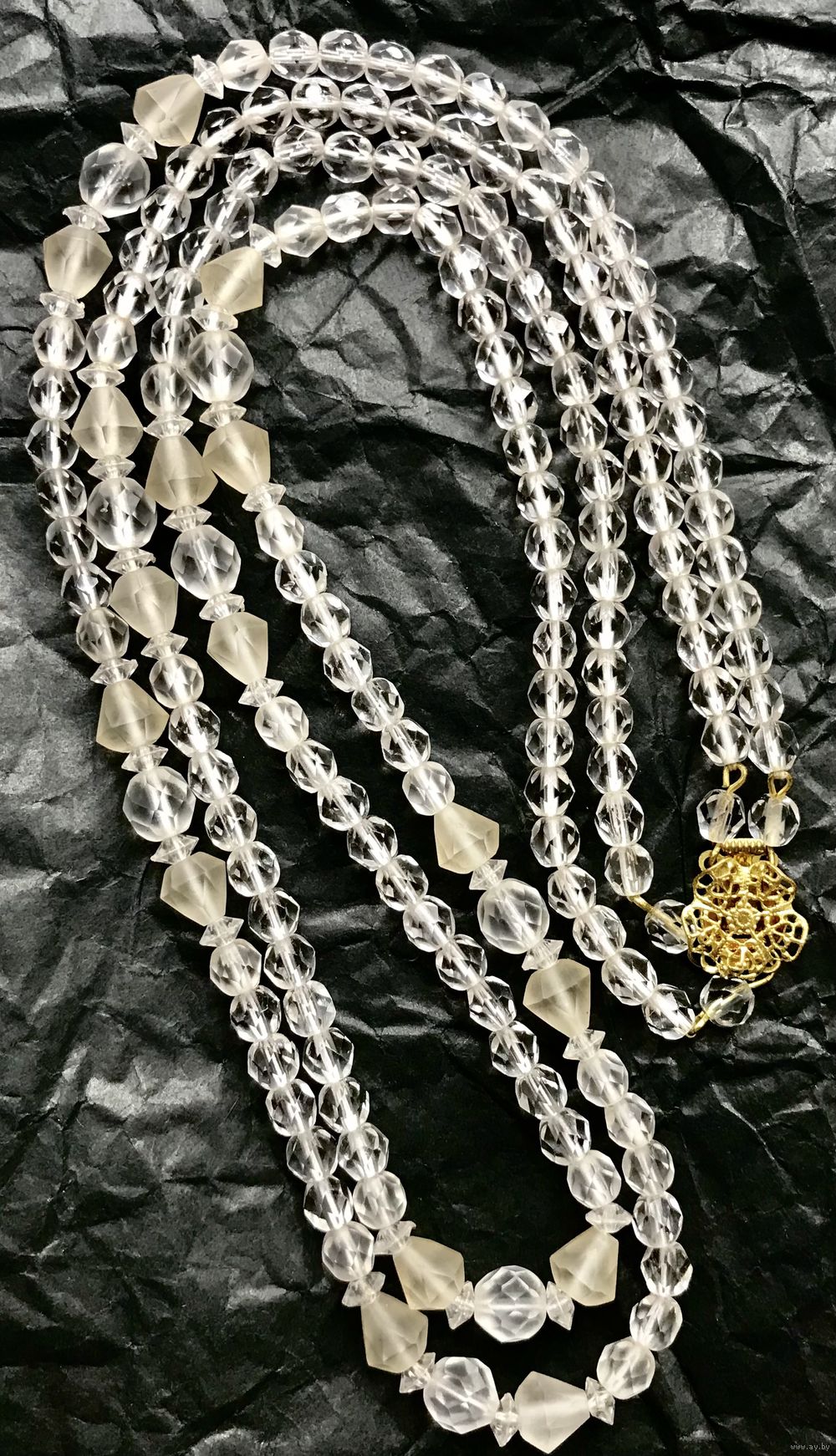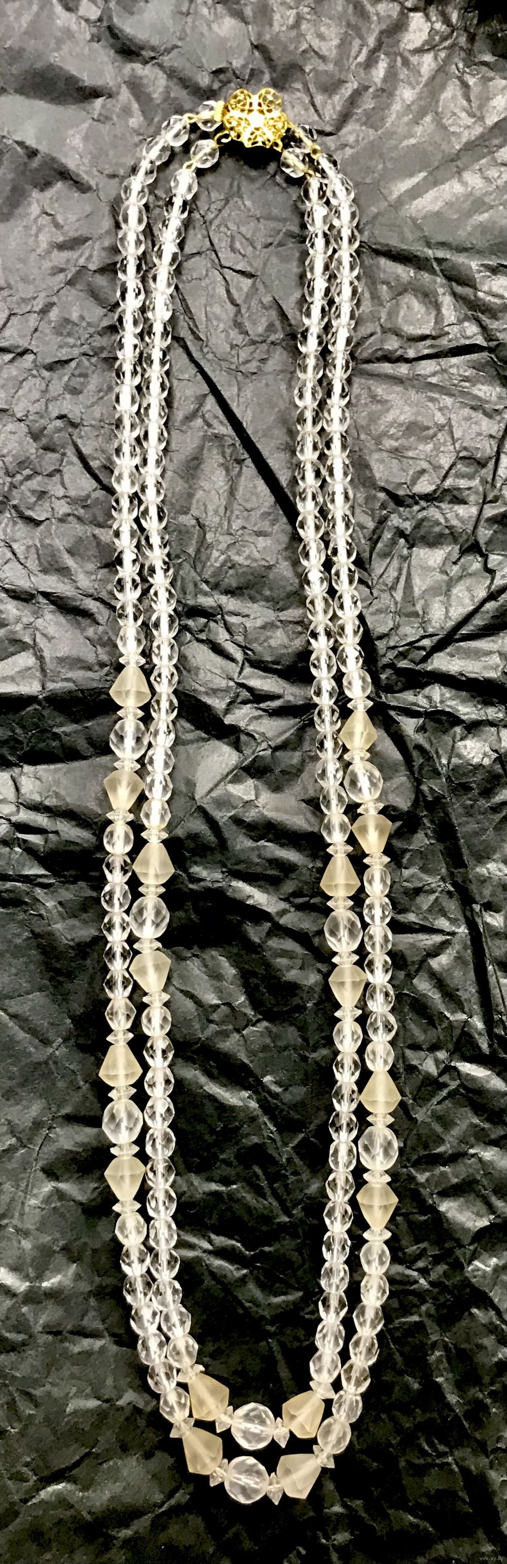 Винтажные двухрядные бусы из чешского стекла двух видов. Длина верхнего ряда 56см., нижнего 60см. Состояние хорошее.