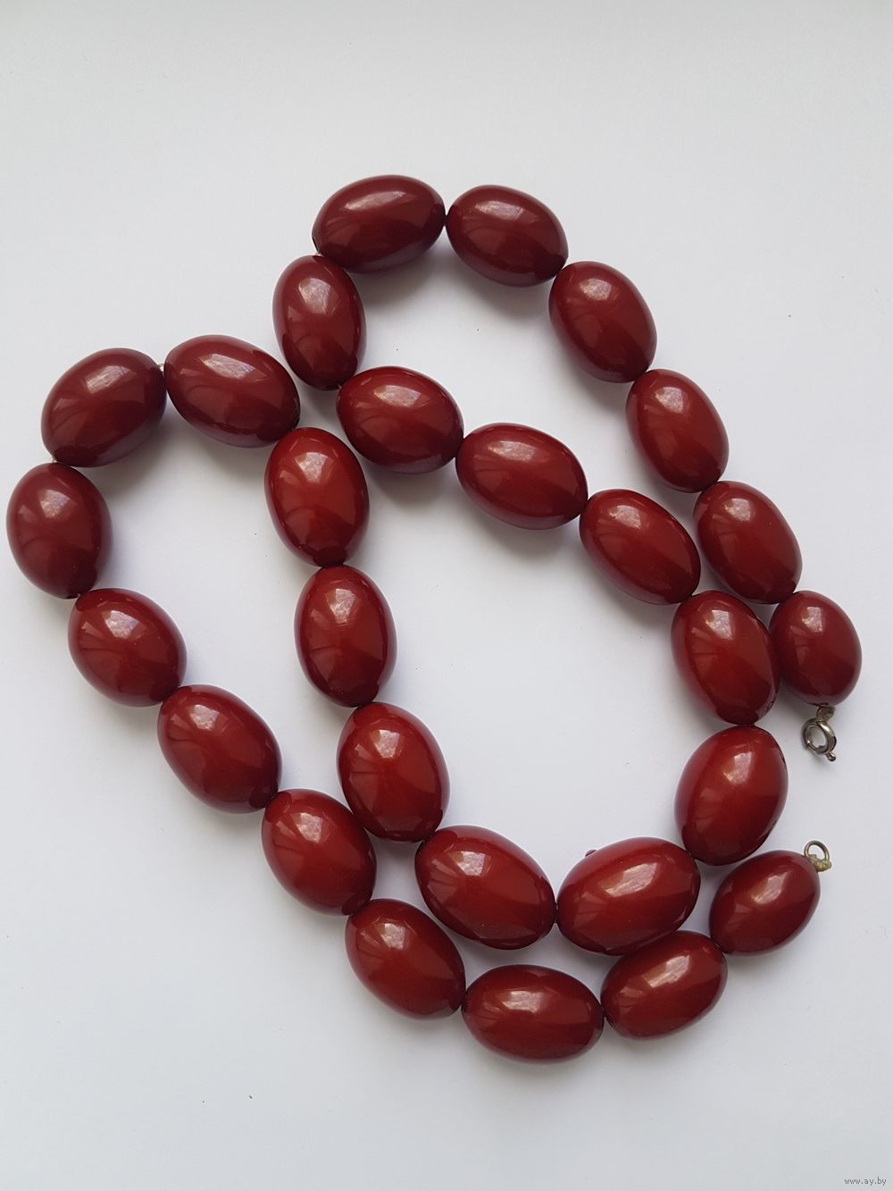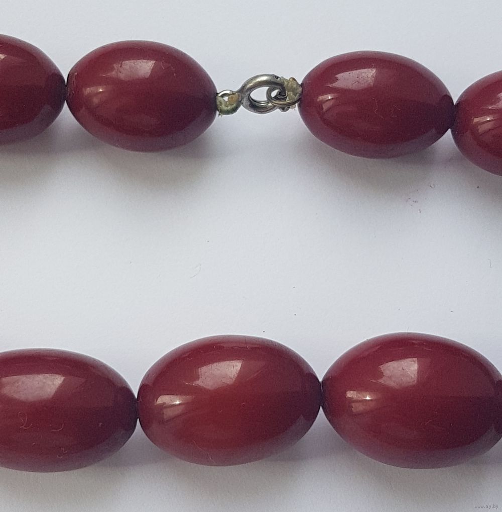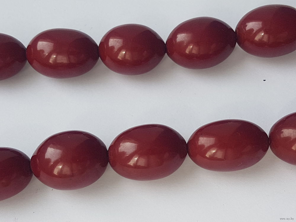 Винтажный красный янтарь бакелит в форме оливки. Цвет плотный.
