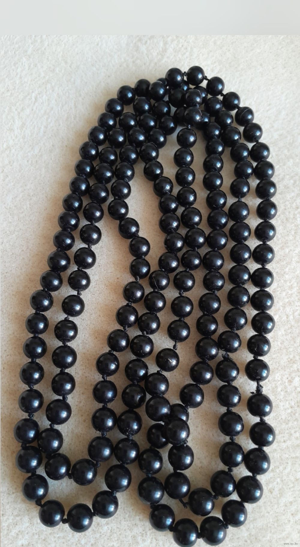 Бусы черное стекло нанизаны через узелок.