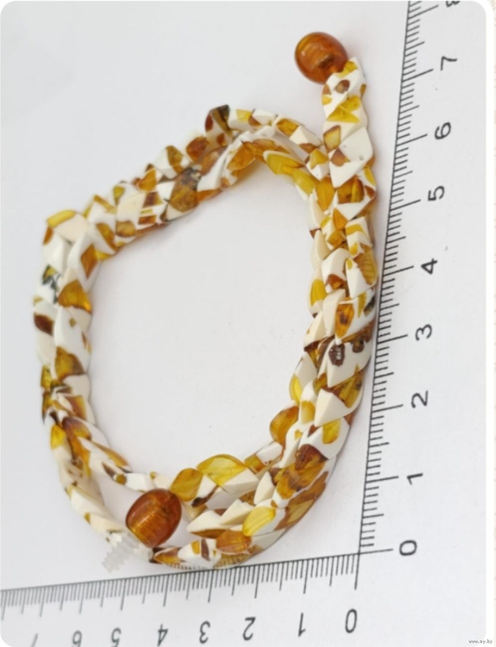 Бусы Далматин плетение Змейка. Кусочки янтаря в эпоксидной смоле. Длина в сложенном виде 22.5 см.