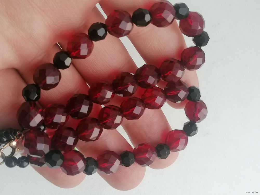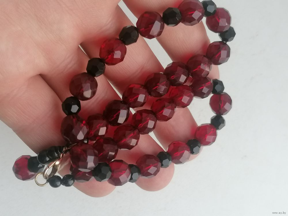 Бусы гранатовое стекло