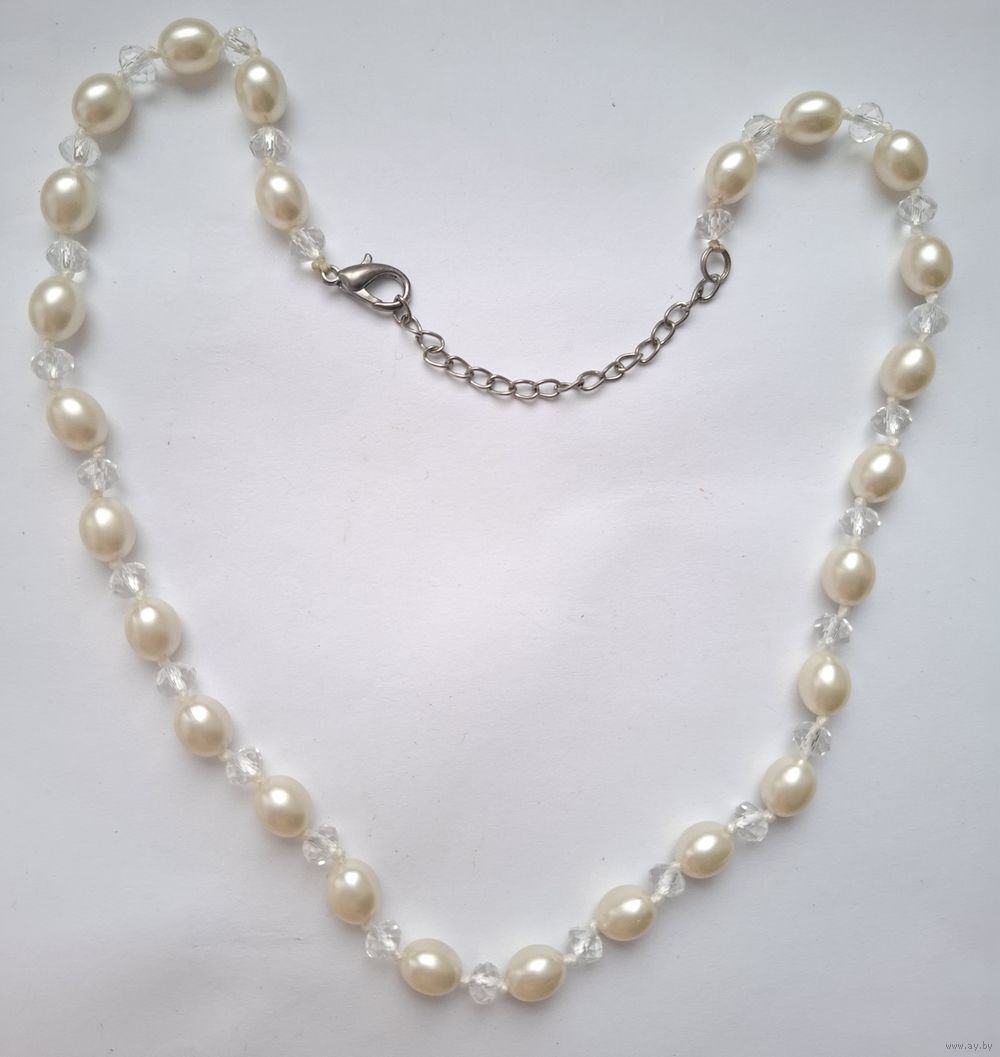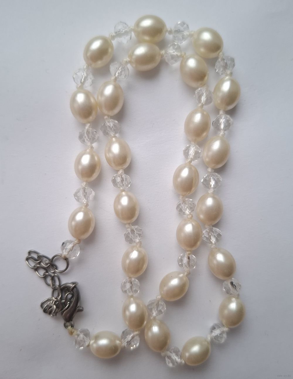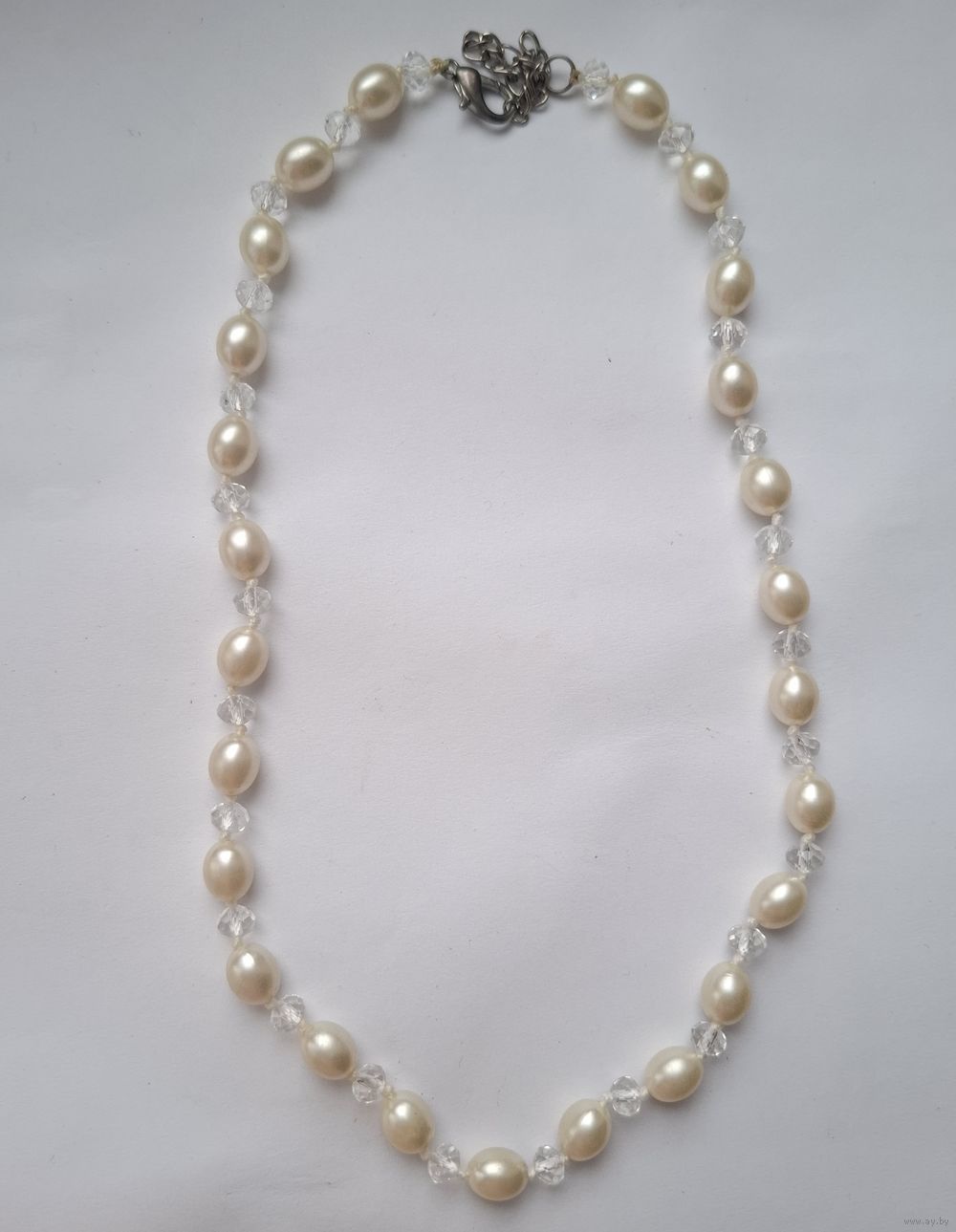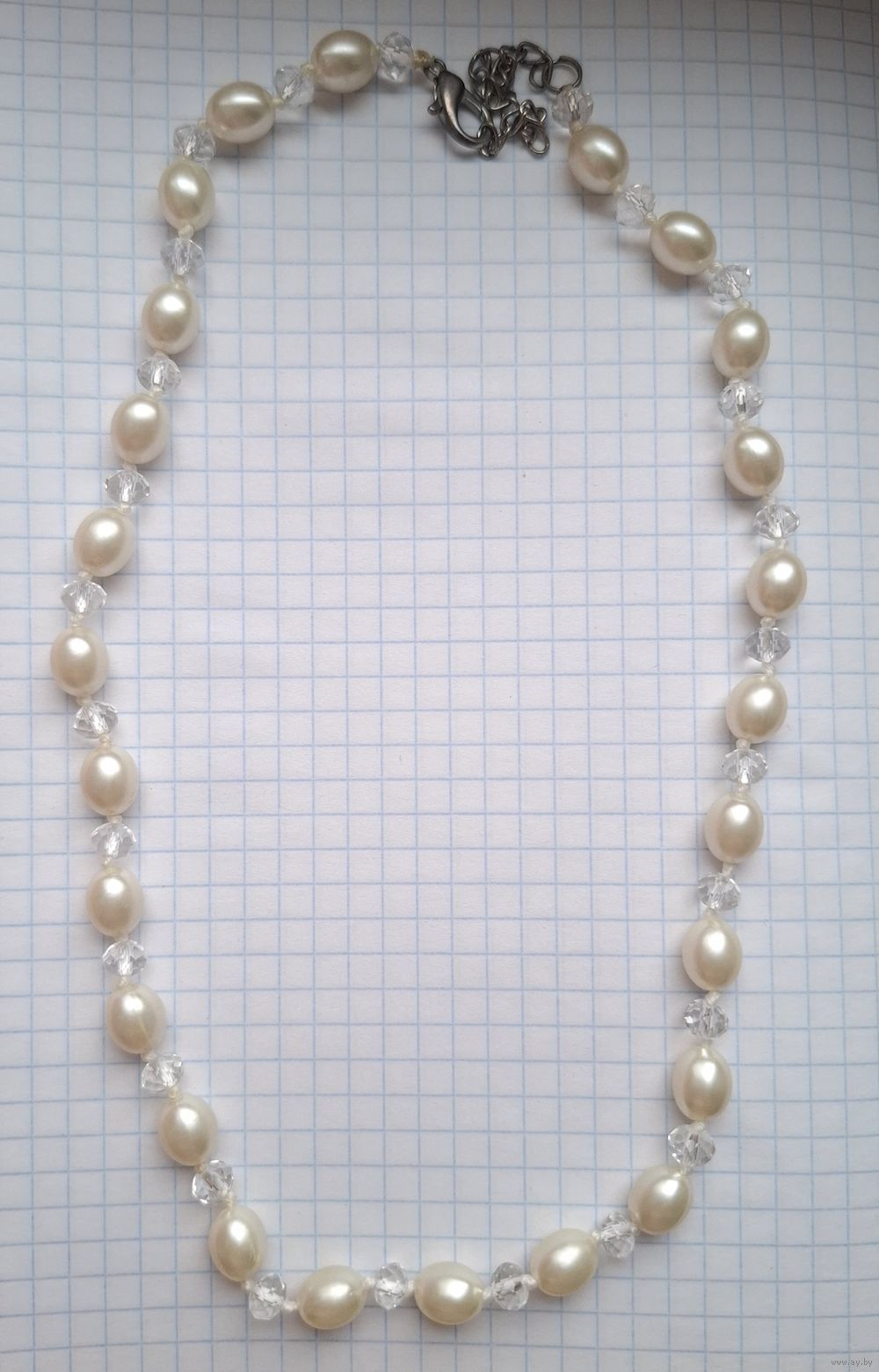 Бусы. Искуст. жемчуг (пластик) и прозрачные стеклянные кристаллы. Колье