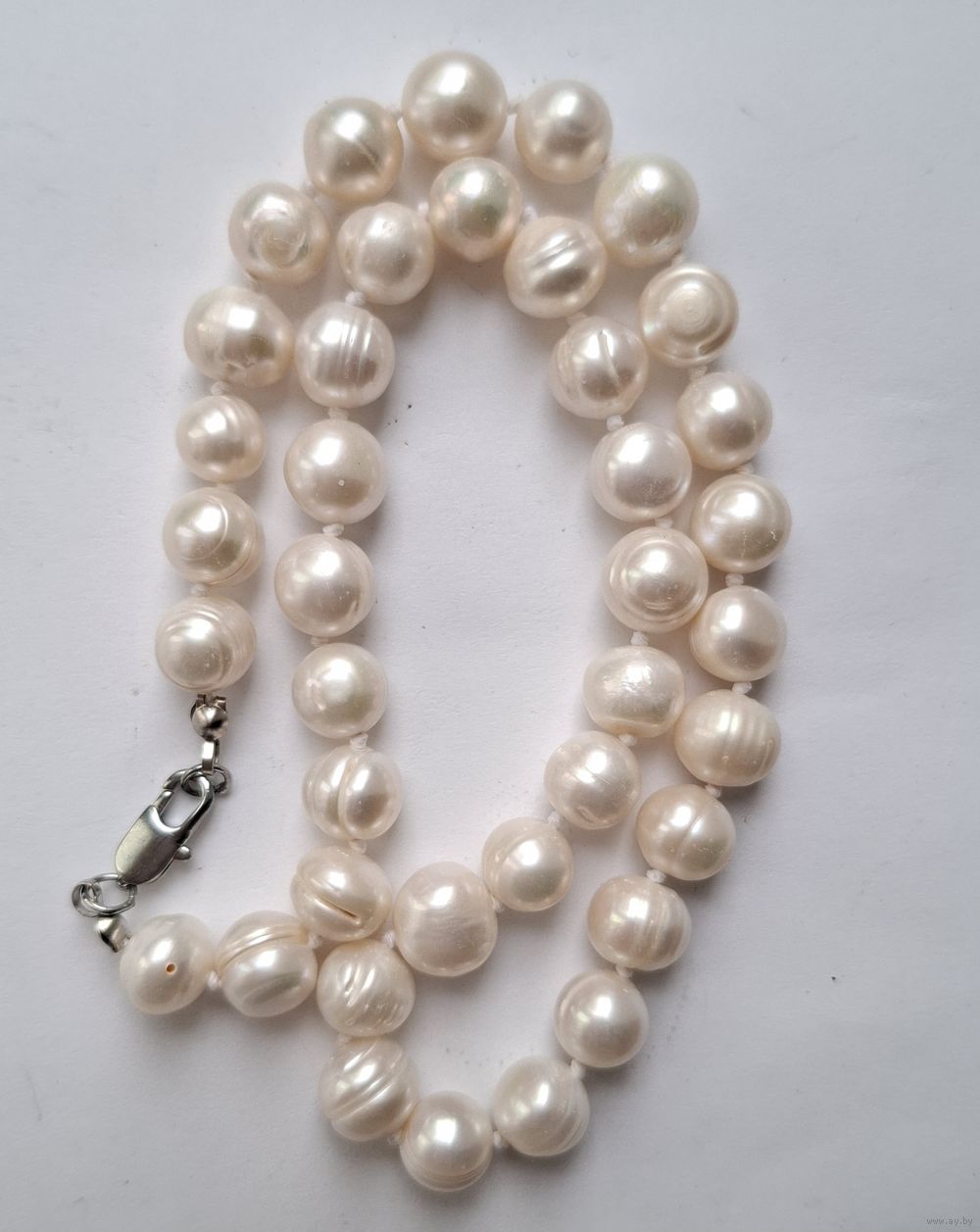 Натуральный жемчуг. Жемчужное ожерелье. Перламутровый блеск. Длина 44.5 см
