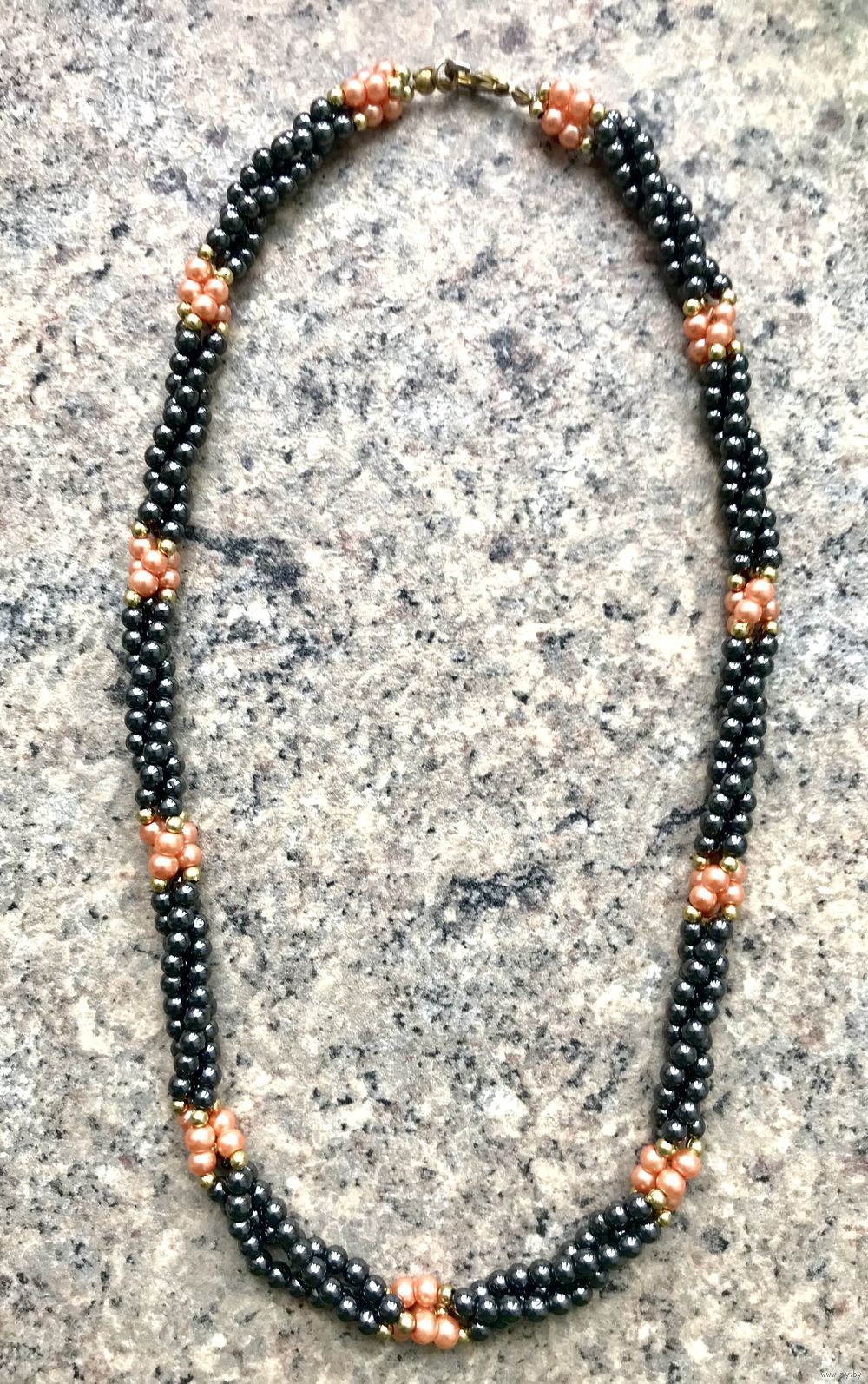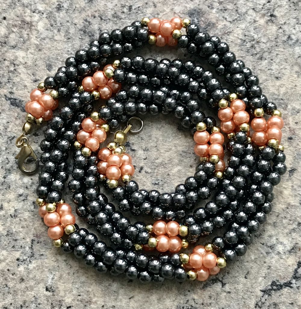 Винтажное ожерелье из стеклянных бусин под гематит. Длина 50 см. Состояние хорошее.
