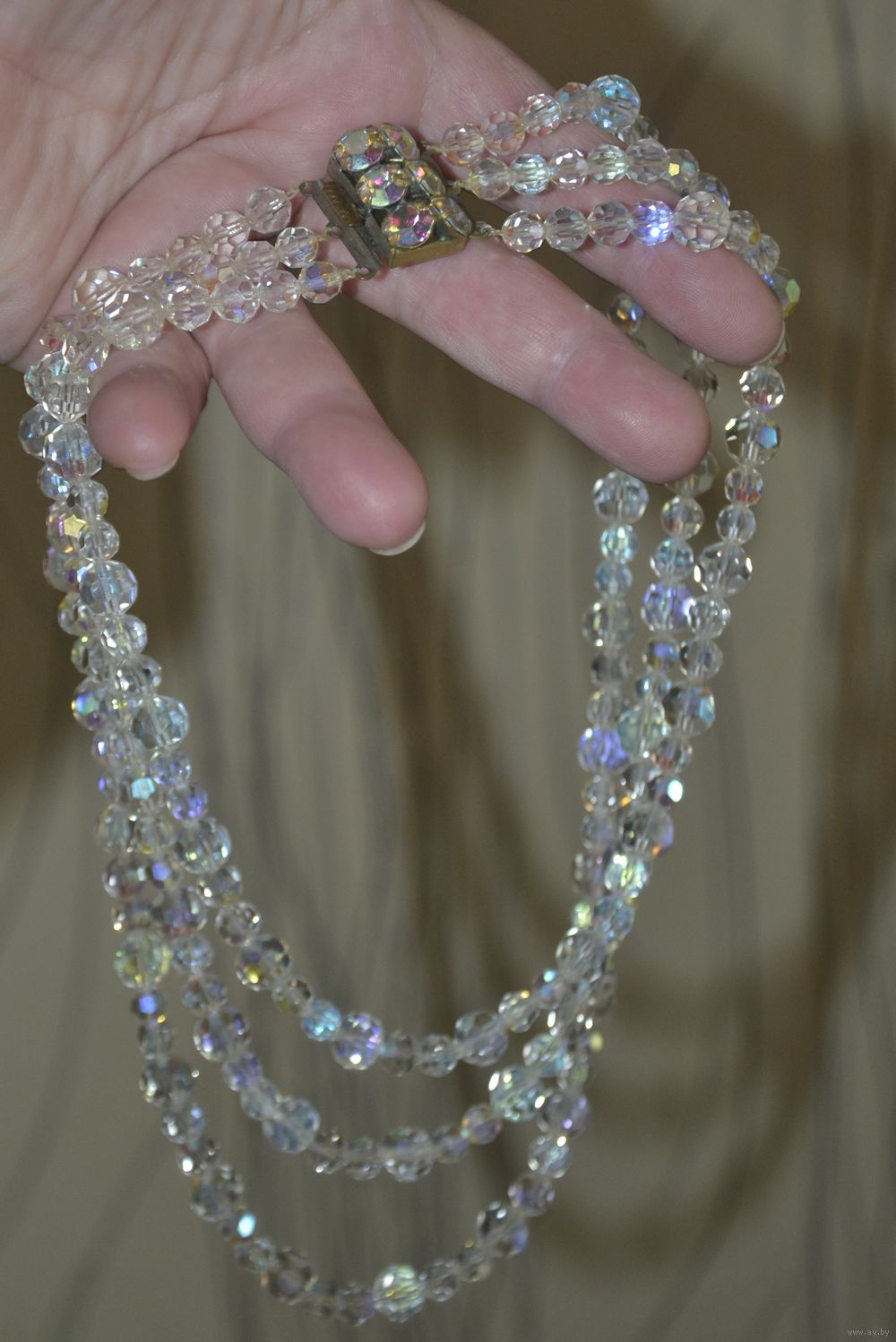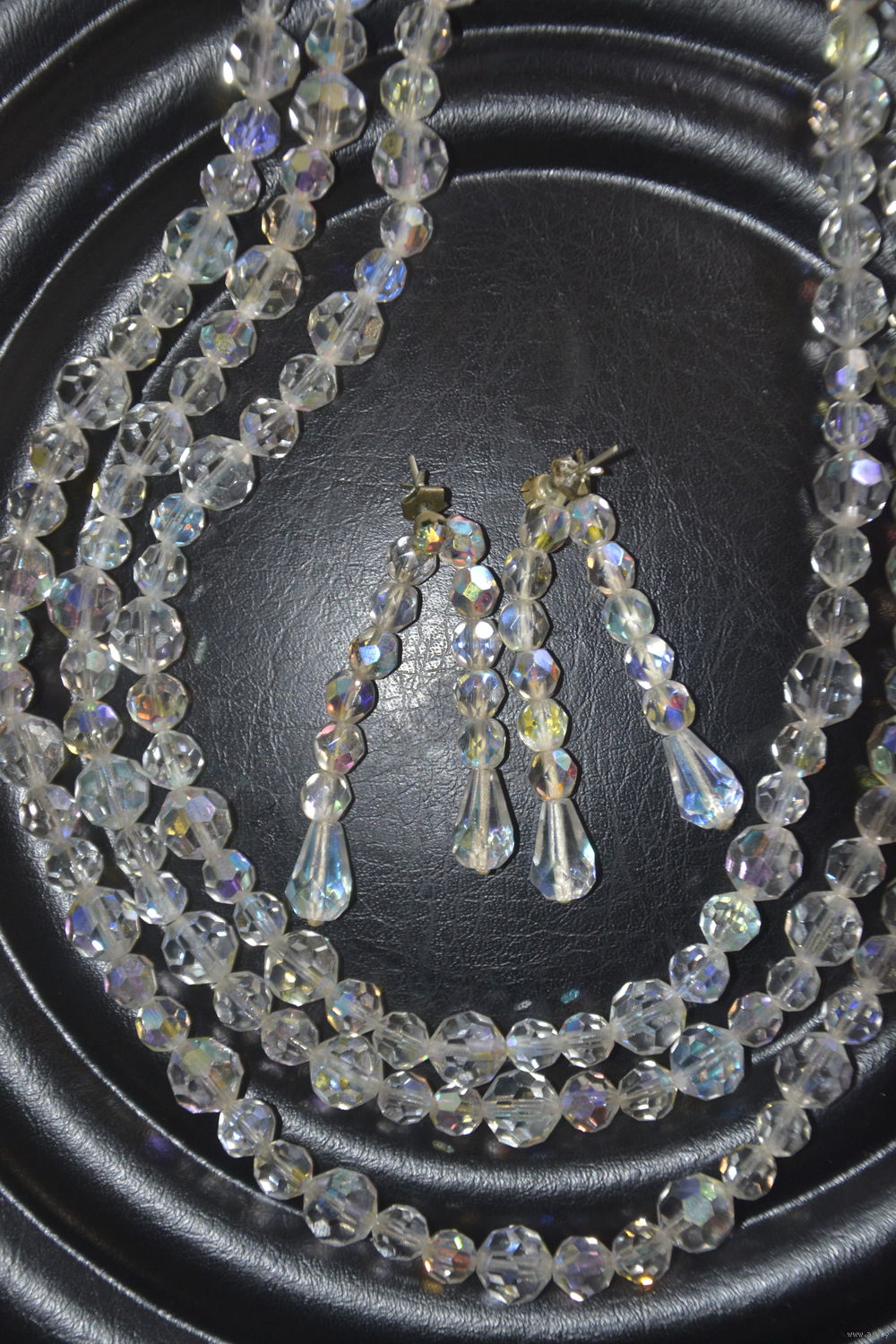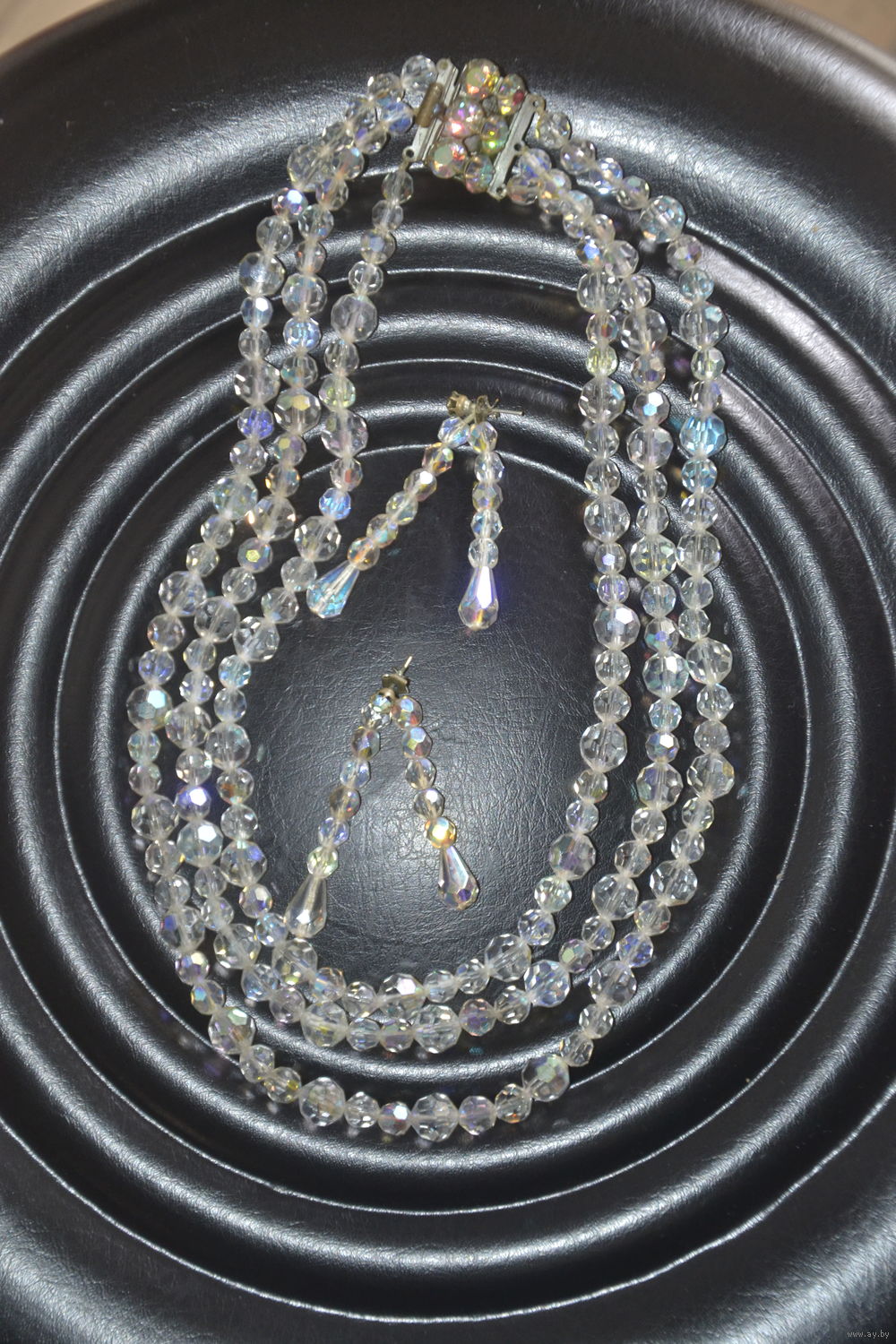 Бусы три ряда + серьги. Макс длина в сложении 24 см