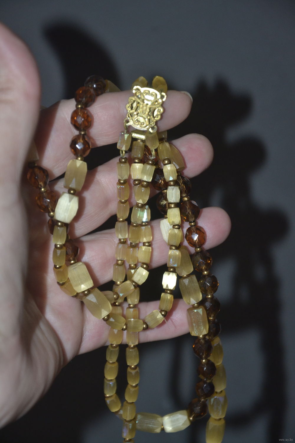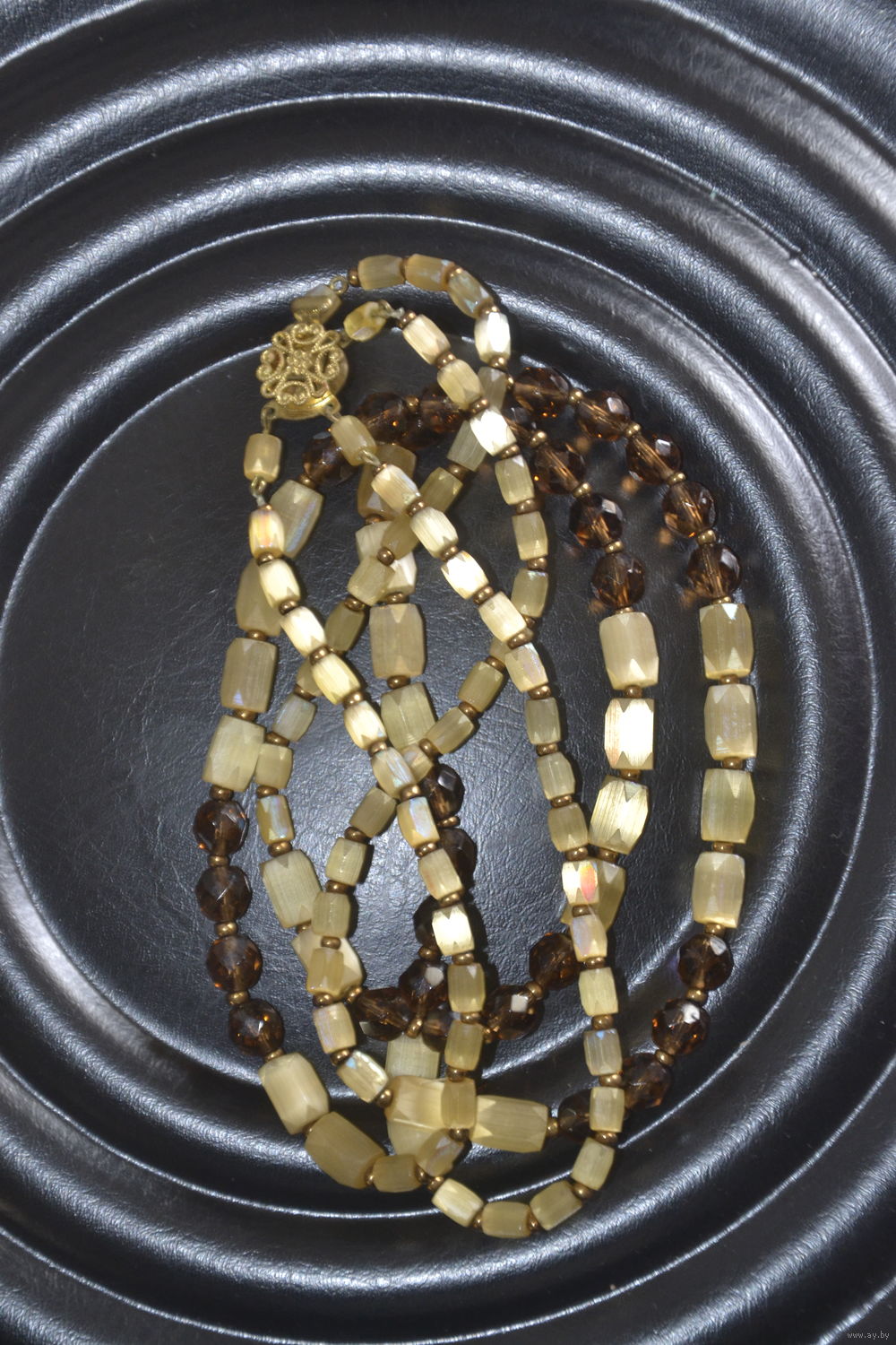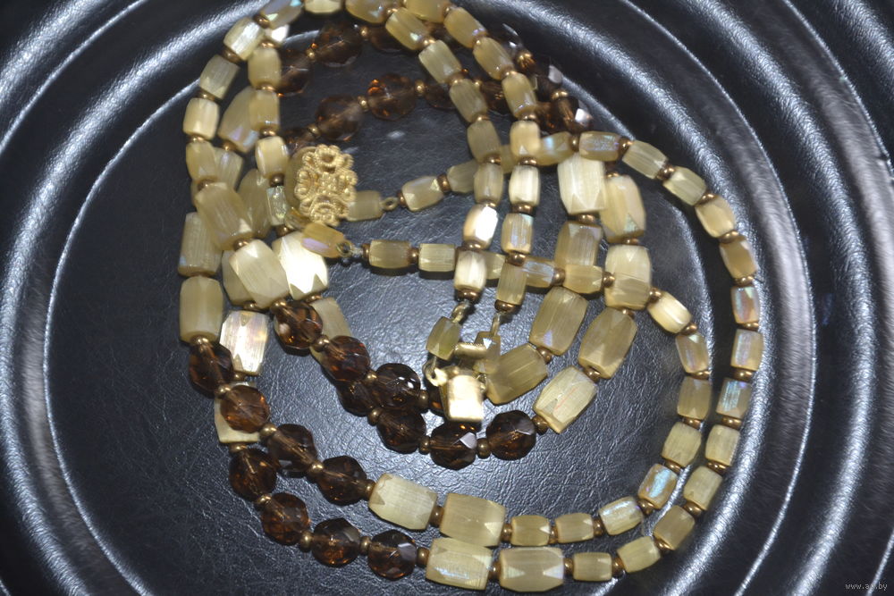 Бусы Сатиновое стекло два ряда. . Макс длина в сложении 28 см