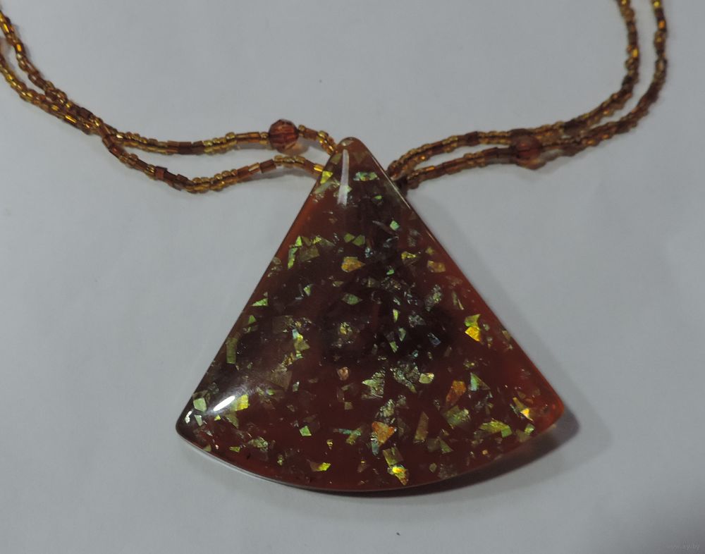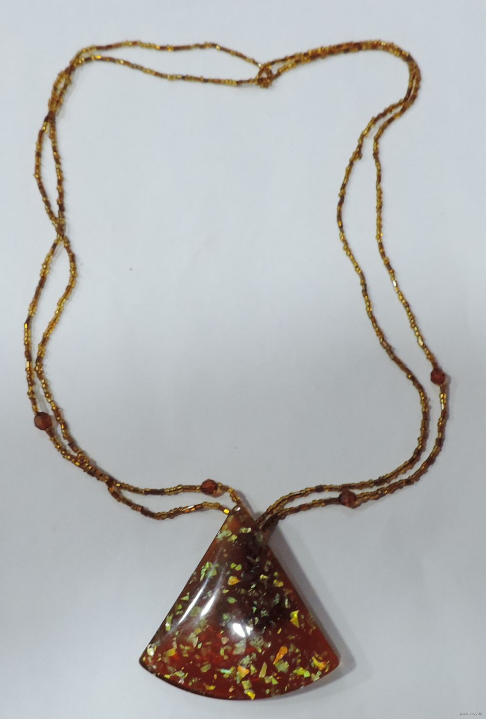 Бусы с крупным кулоном, 2-х рядное колье. Цветное стекло. Кулон - пластик. Длина 120 см. Размер кулона 6-6.5 см.