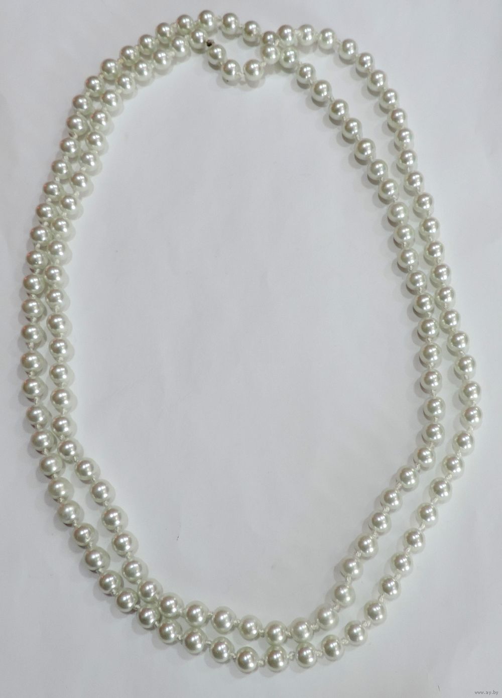 Бусы серебристые по жемчуг 80-е годы Европа. Длина 124 см. Стекло.