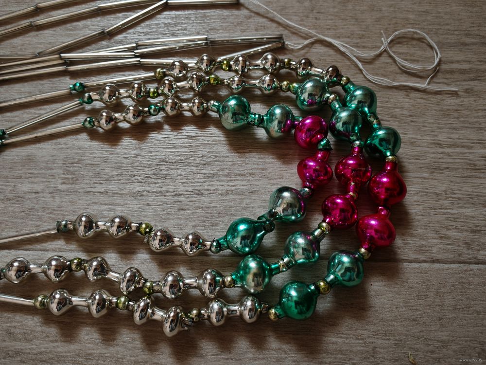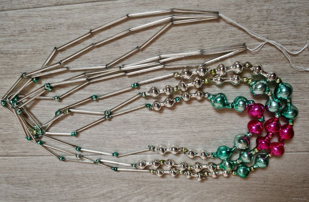 Советские бусы из стекляруса. Стекло. 3 нити. Состояние и размер на фото.