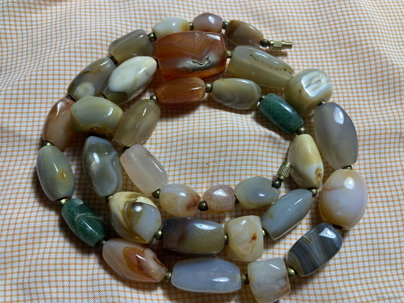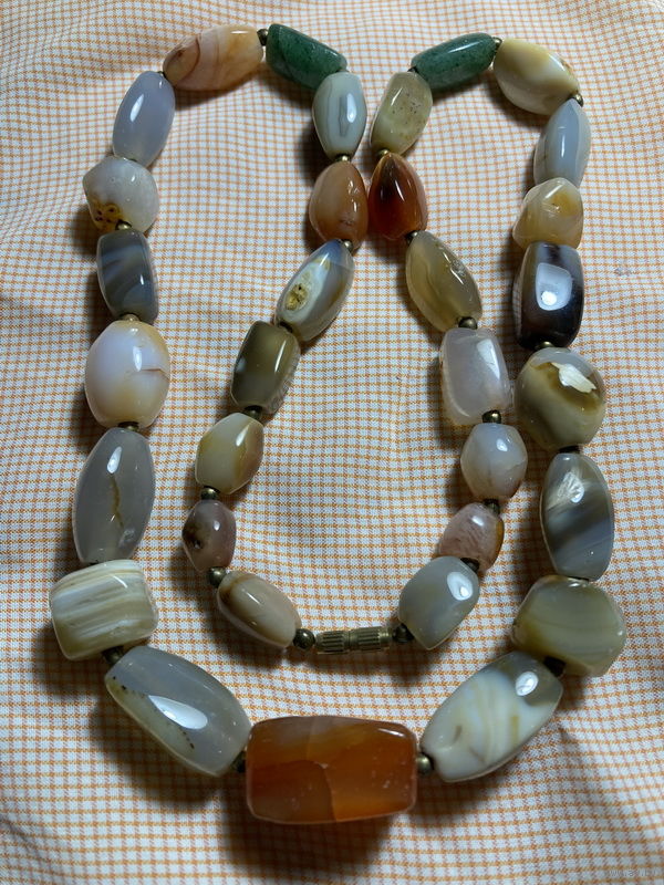 /140/ Вес 131 гр, Длина 66 см, самая большая бусина 25х15 мм, самая малая 11х9 мм. Закрутка металлическая, мелкие металлические шарики между бусинами