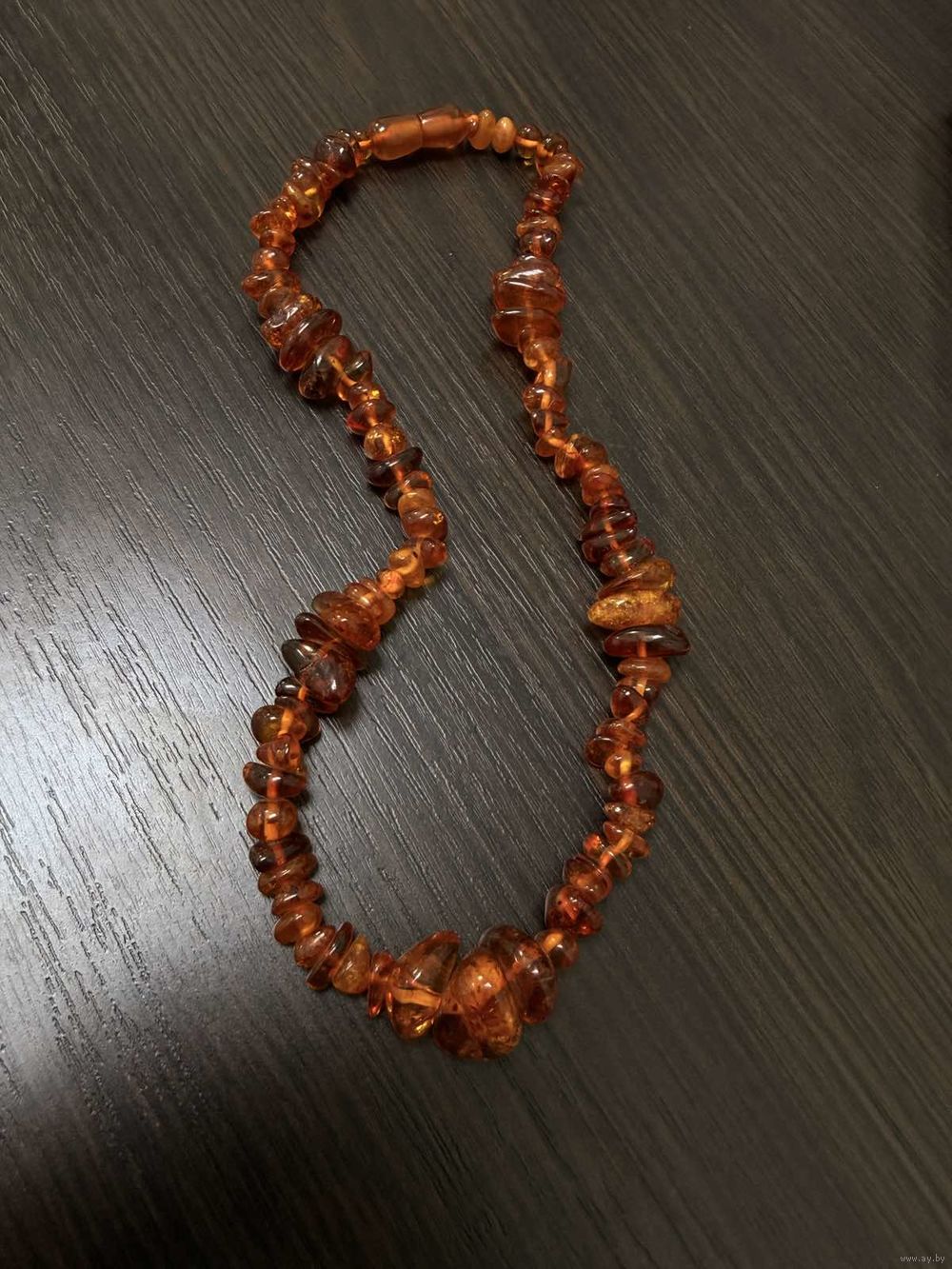 Бусы из янтаря разного размера , застежка выполнена из камешка янтаря внутрь которого засверлили шпильку с резьбой ( закрутка ). размеры 22 см вес 28 грамм . средний размер камешка 1.5 на 0.5 мм .