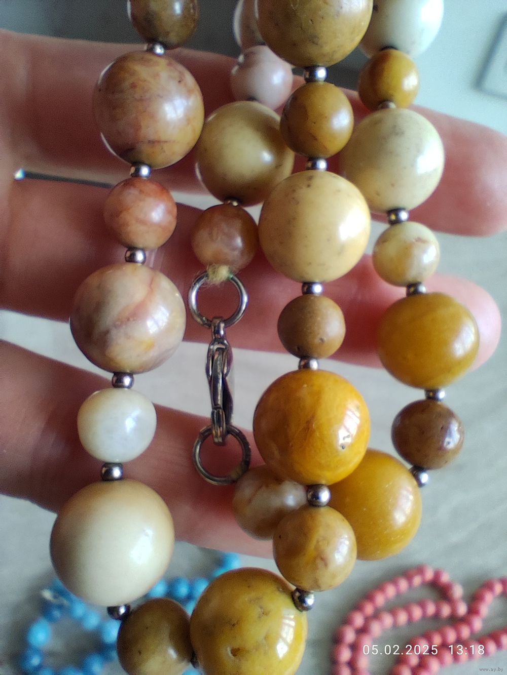 В лоте только бусы из яшмы. Бусы много лет перекладывались, в носке так и не были.