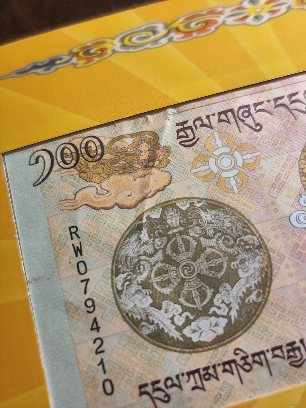 Бутан 100 нгултрум образца 2011 года AUNC деффект на фото