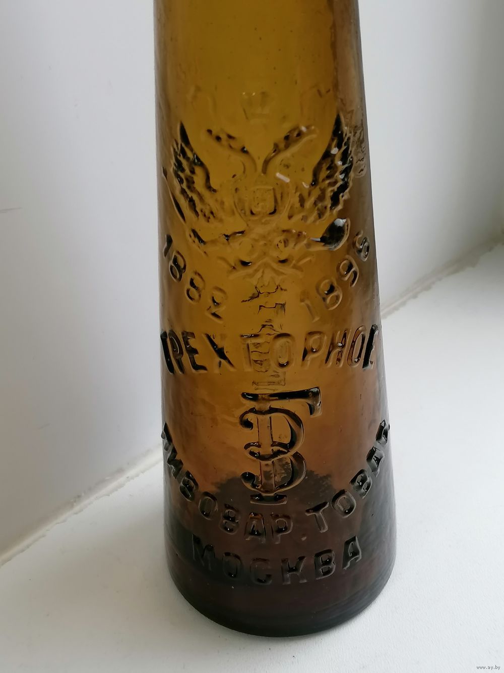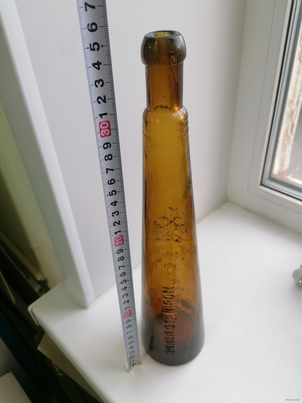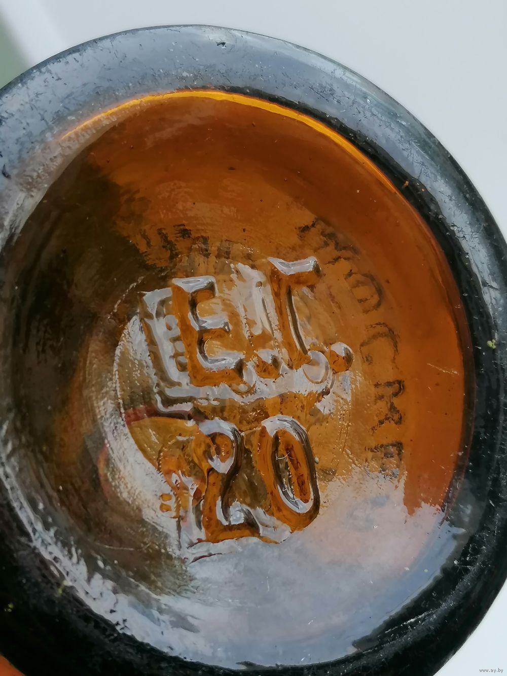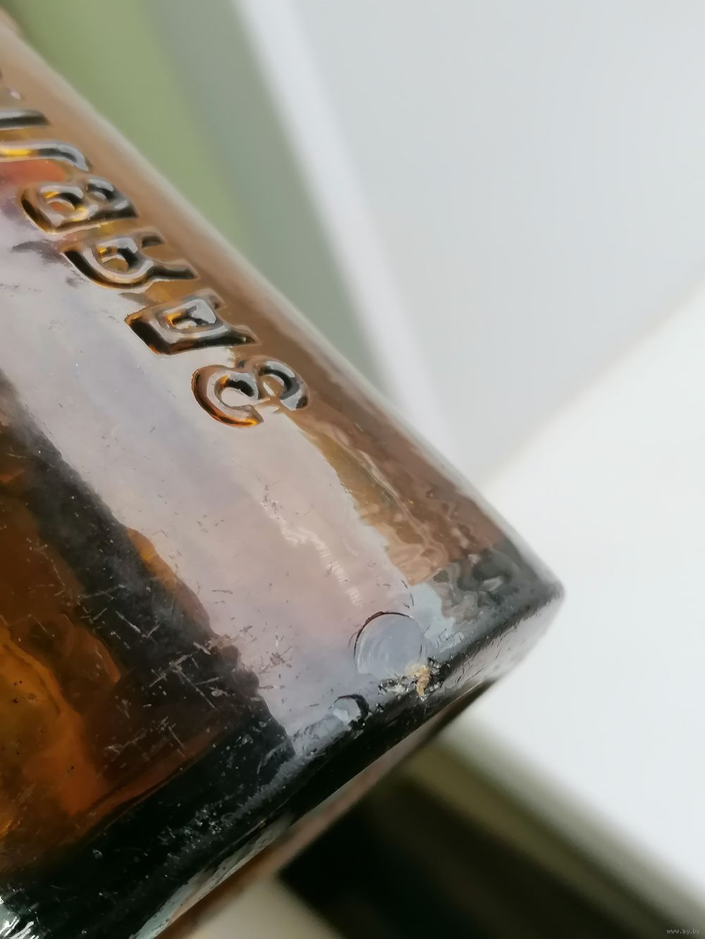 В хорошем состоянии. Из нюансов скольчик на дне, царапинки, потёртости. На горле формовочный шев, не трещина. С другой стороны пузырёк в стекле.