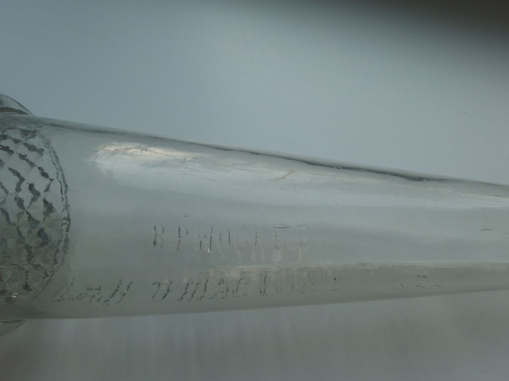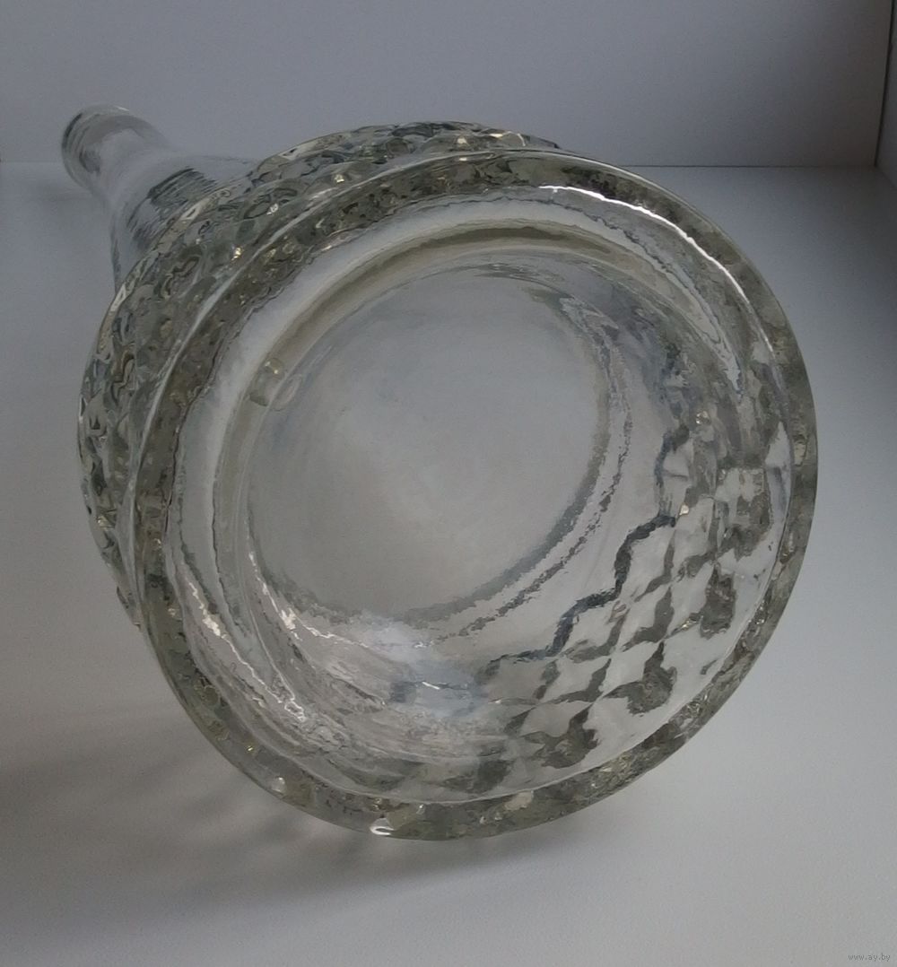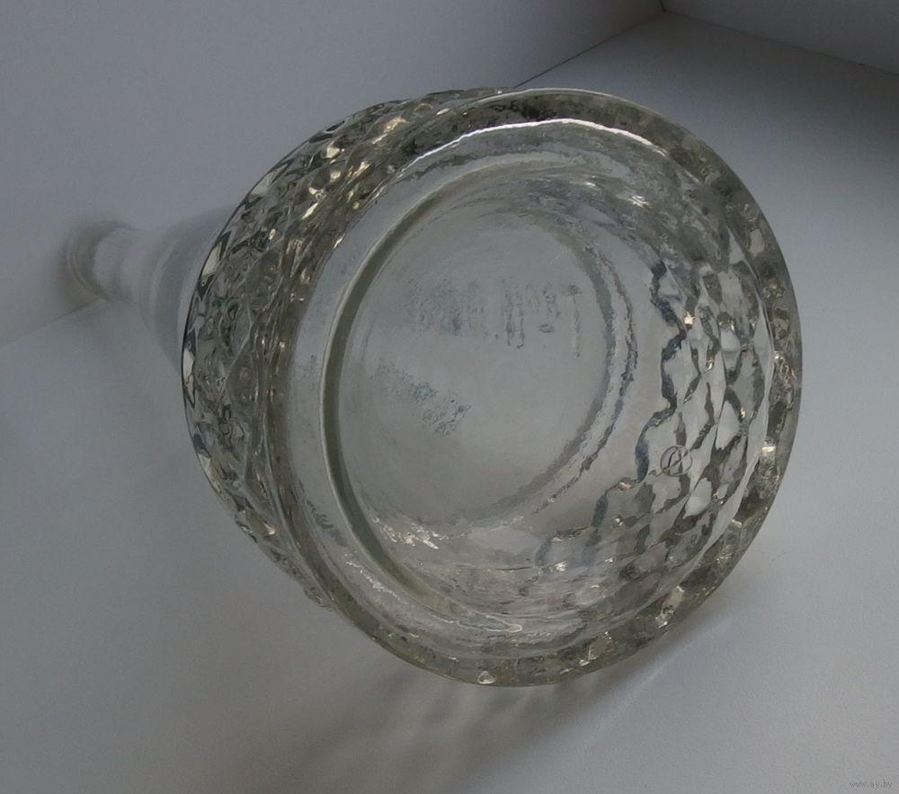 В целом отличное состояние. Трещин нет. Горлышко без сколов. Продольная царапинка(последнее фото). По кромке донышка три микроскольчика, заметны в лупу.