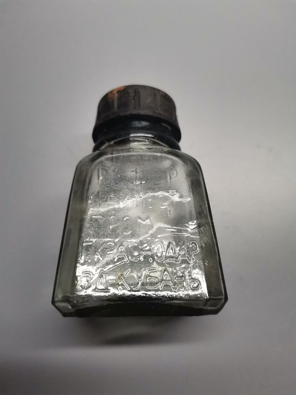 Бутылочка от чернил СССР с надписью. ММП КРАЙМЕСТ-ПРОМ КРАСНОДАР зд. КУБАНЬ.