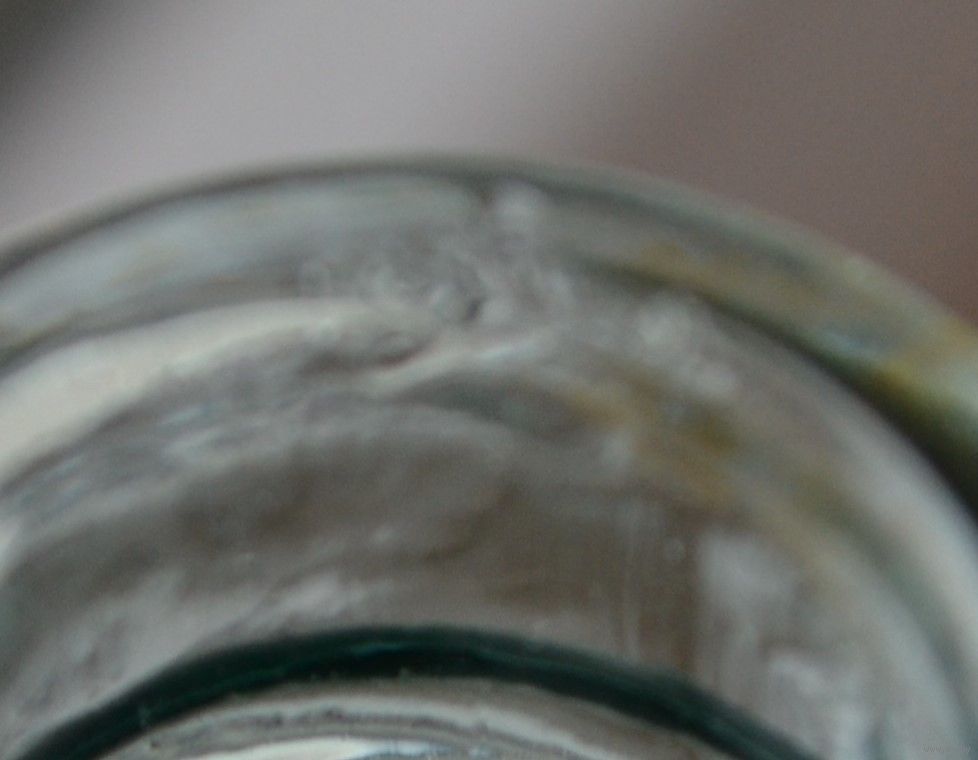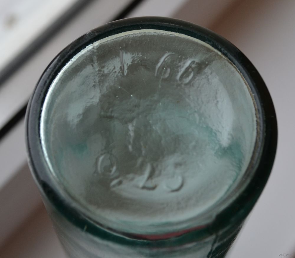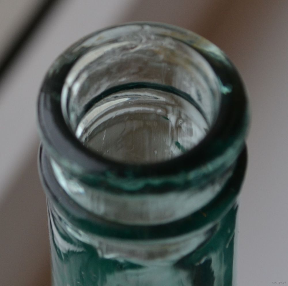 Внутри на горлышке есть маленький скольчик (смотрите последнее фото), порезаться не льзя. На дне клеймо 0,25,1-66 и 3.