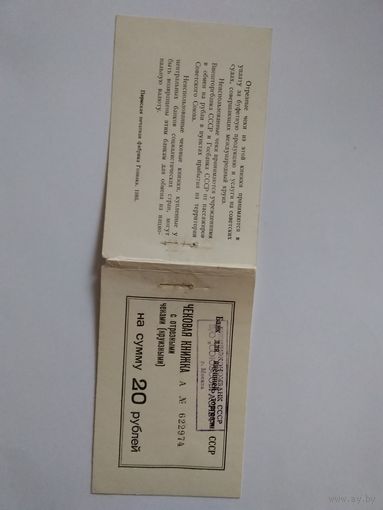 БВТ Обложка от чековой книжки на 20 рублей 1985 год.