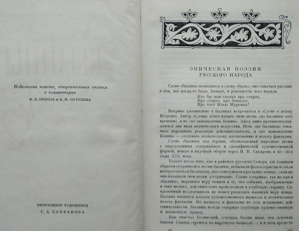 Цена за 2 тома. Тираж 75000 экз. 564+524 стр. В книге "Былины" вашему вниманию представлены классические тексты, то есть былины, записанные собирателями XVIII-XX веков в далеких российских селах. Многие из них уже после первых публикаций привлекли широкое внимание отечественной интеллигенции: ими живо интересовались Белинский, Пушкин, Добролюбов и Чернышевский. Издание сопровождается вступительной статьей и обширными комментариями В. Я. Проппа и Б. Н. Путилова и представляет интерес как выражение концепции героического эпоса В. Я. Проппа.