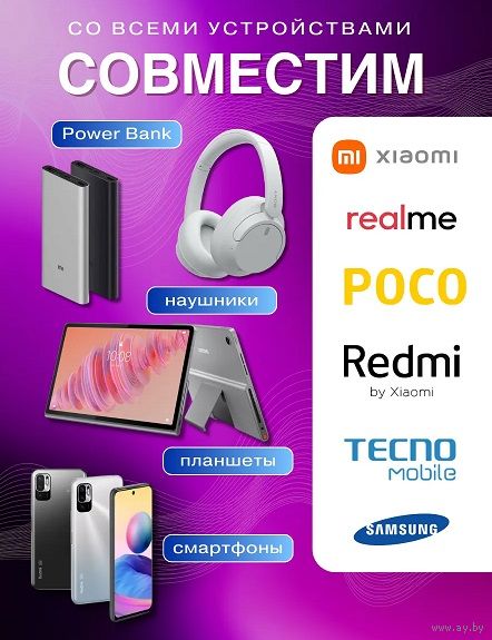 Сетевое зарядное устройство Xiaomi 67W с кабелем USB Type-C быстро зарядит смартфоны, планшеты, наушники, повербанки и другие гаджеты. Поддерживает быструю зарядку и совместимо с устройствами с разъёмами Type-C, micro-USB и Lightning (iPhone).