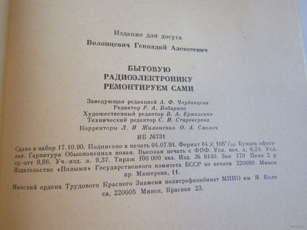 "Бытовую радиоэлектронику ремонтируем сами". Геннадий Волонцевич. Книга. 1991 г.и. м