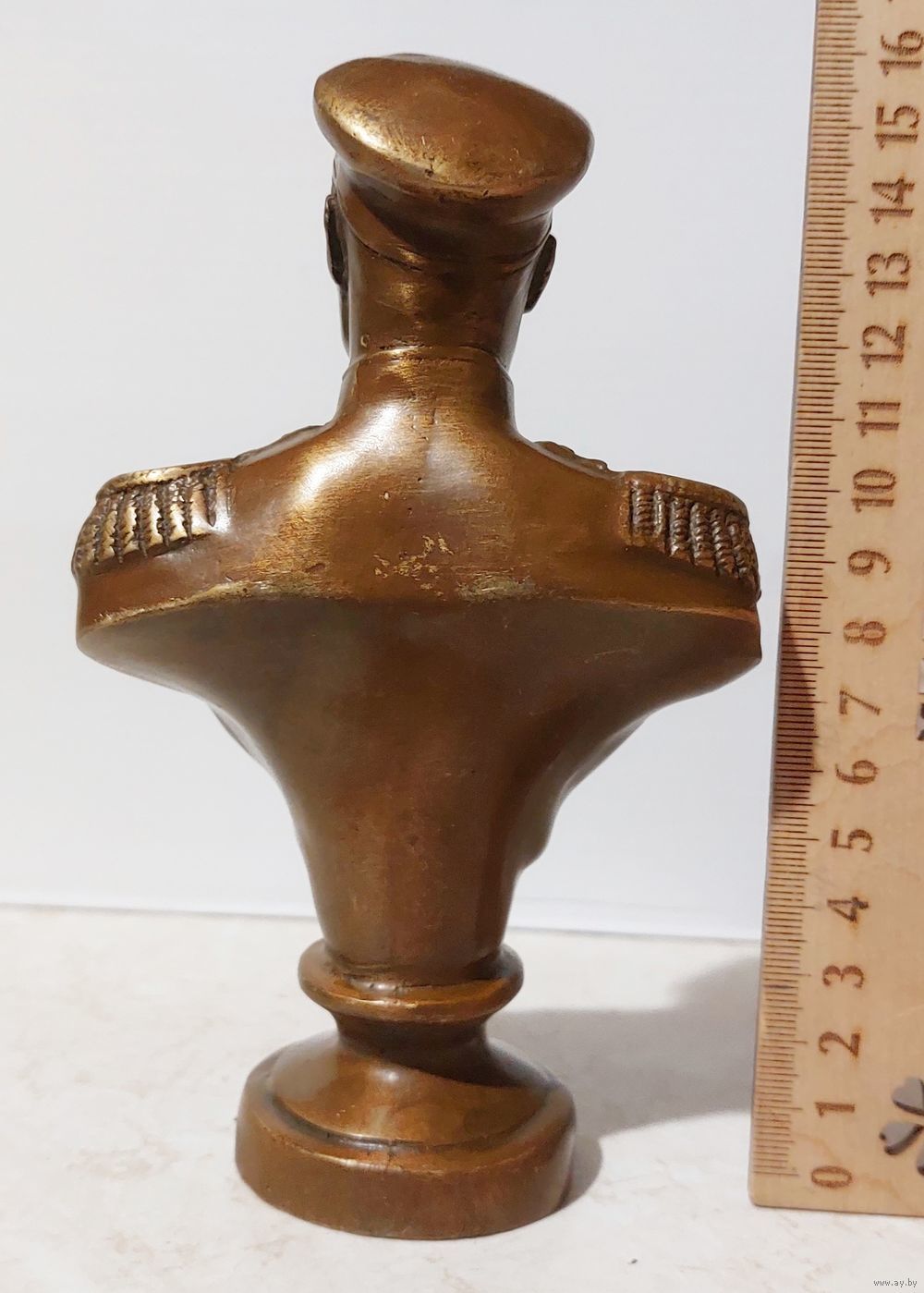 Высота около 16 см. Вес около 0,6 кг. Снизу запаян. Внутри пустотелый, при переворачивании немного позвякивают остатки формовочного материала.