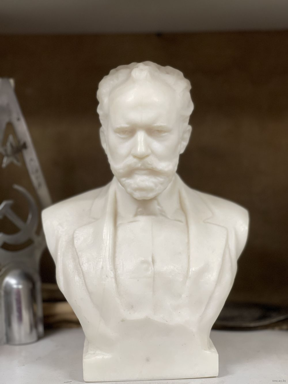 Высота 24см, вес 1300гр. Материал похож на пластик, не уверен.