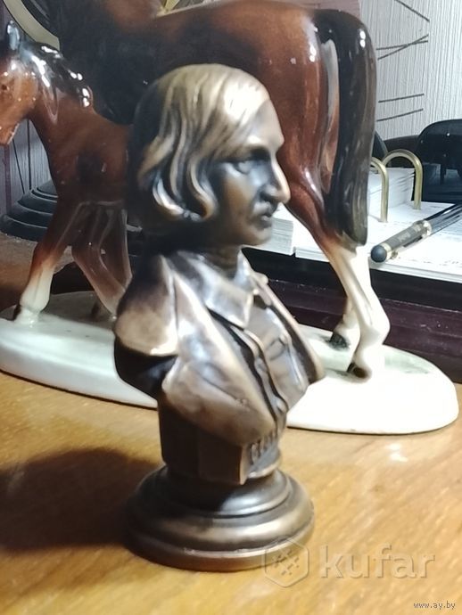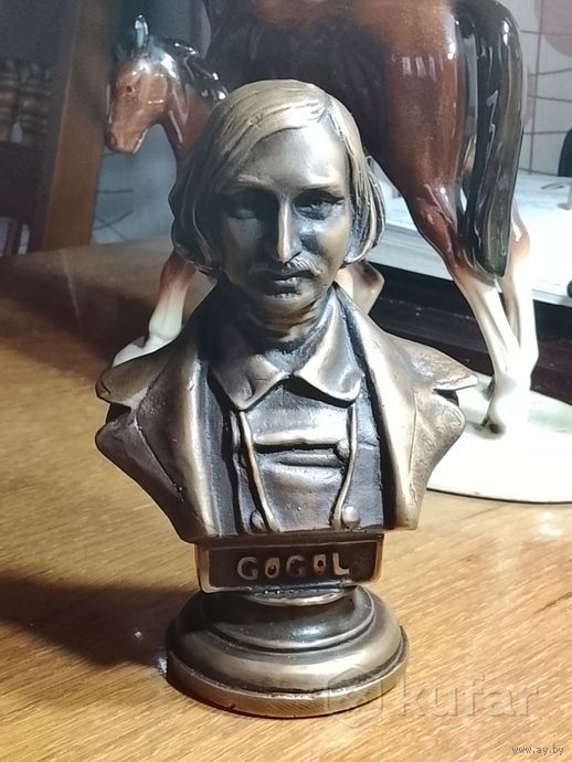 Бронза. Бюст Н.В. Гоголя. Высота 13см, ширина 9см, вес 566г