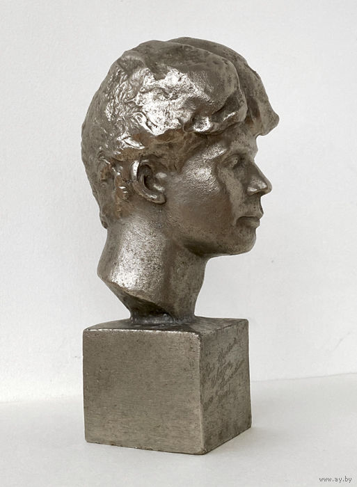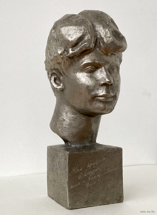 Бюст Сергей Есенин. Тяжелый металл. Высота 15 см. На постаменте надпись: "Всё пройдёт, Лизок, как белых яблонь дым!"