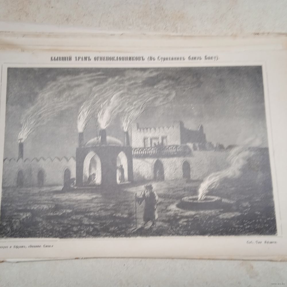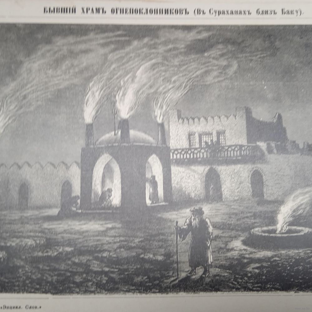 Бывший храмъ огнепоклоников...Гравюра энциклопедическая СПБ.19-20век.24х17см.