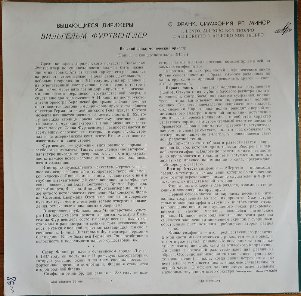 Ц. Франк - Вильгельм Фуртвенглер, Венский Филармонический Оркестр – Симфония Ре Минор