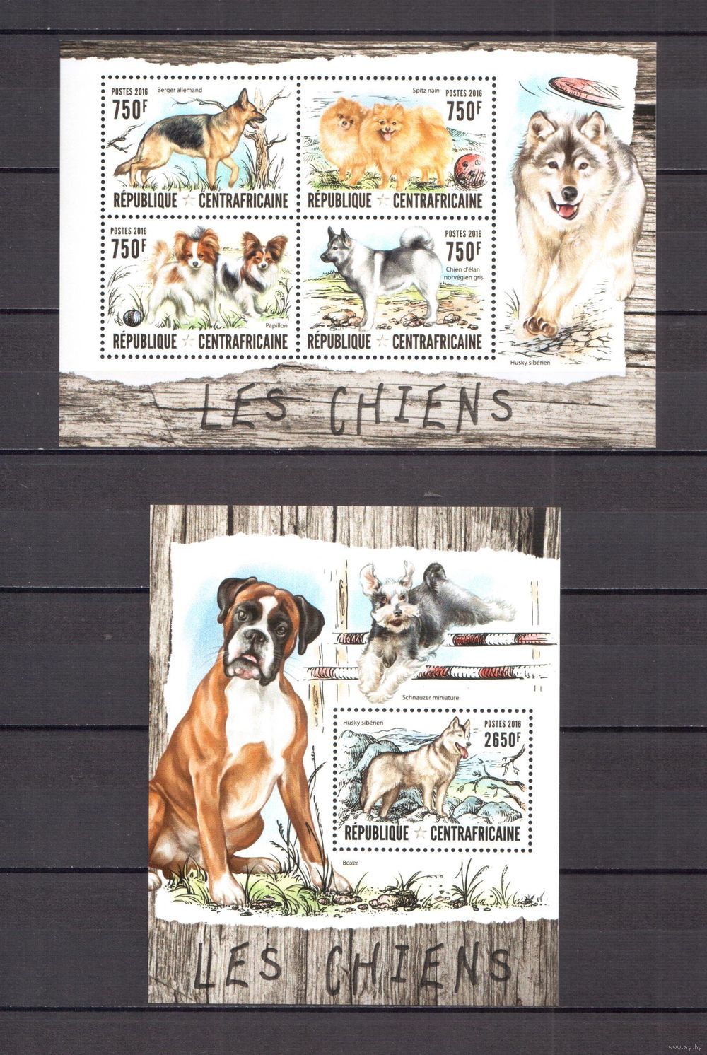 ЦАР 2016 Фауна домашние собаки - 1 лист + 1 блок MNH**