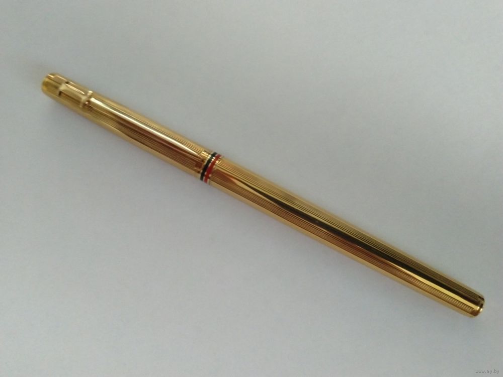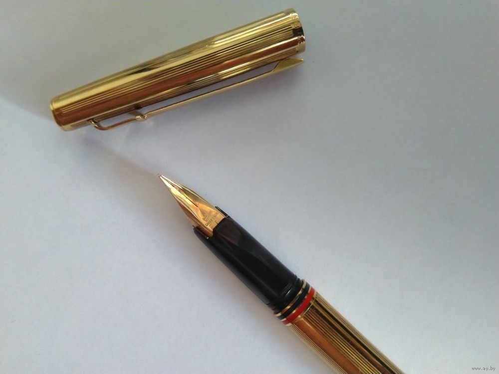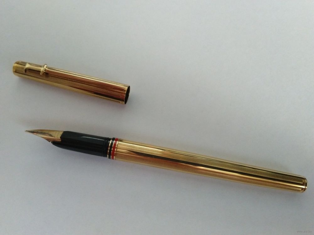 Отличное золотое перо 585 пробы F, но больше соответствует современным EF, мягкое, вариативное (но конечно не полноценный flex ) с хорошей подачей, пишет очень приятно. Грип секция сложного профиля для удобства держать ( по типу Lamy, но не так сильно выраженная). Картриджно-конвертерная система заправки. Позолота ручки имеет интересный оттенок, цвет более темный, глубокий по сравнению с обычным ярко желтым. Состояние отличное, ручка не была в эксплуатации.