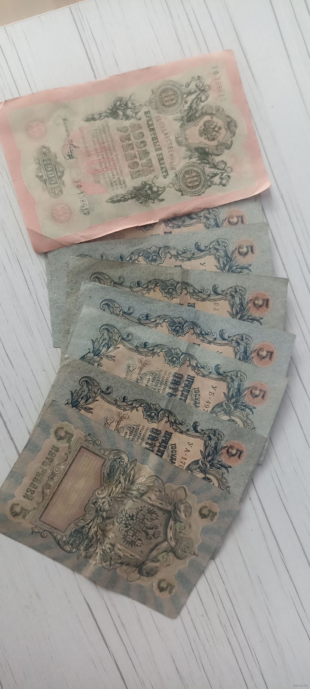 Банкноты. Российская Империя (до 1917). 5 рублей - в наличии 7 шт. 10 рублей - 1 шт.