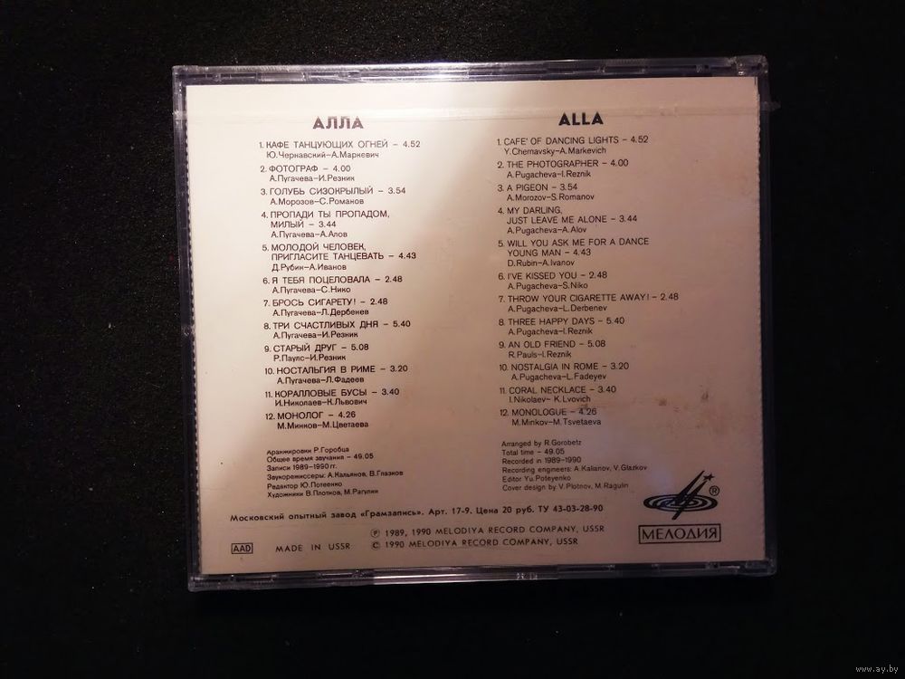 также в формате CD, став таким образом первым российским студийным компакт-диском Аллы Пугачёвой (и вторым после издания на CD сборника песен в Японии в 1988 году). CD-версия вышла с другой обложкой и содержит 12 композиций, тогда как на виниловой пластинке их восемь.