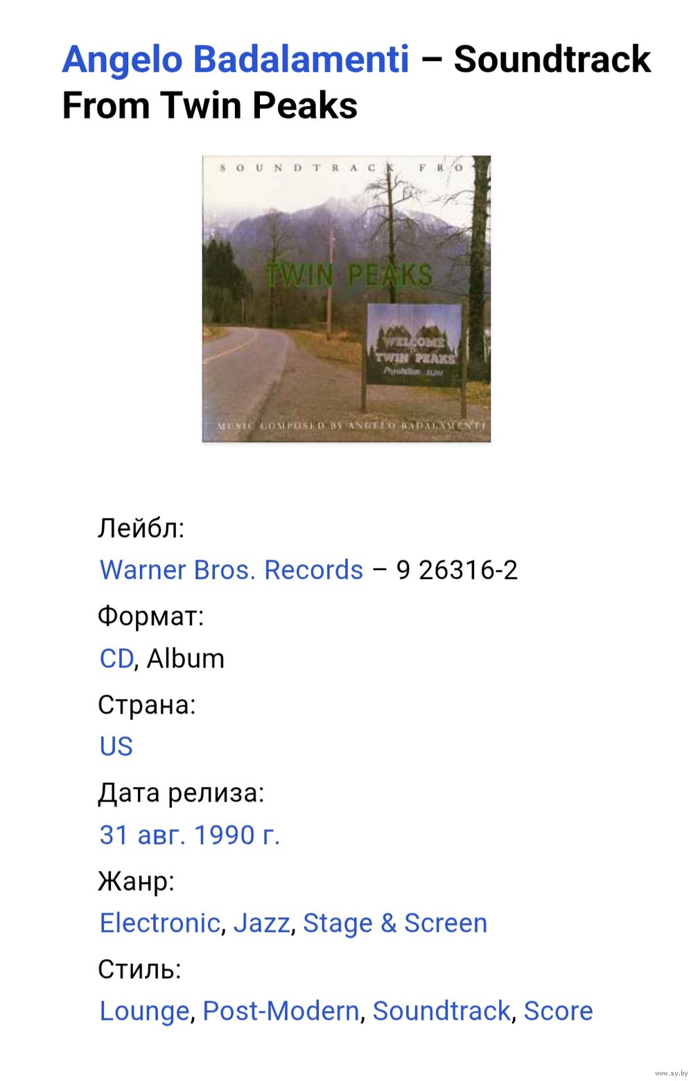 CD Angelo Badalamenti – Soundtrack From Twin Peaks