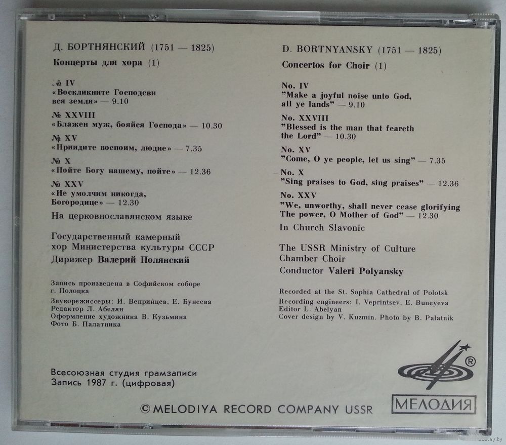 Recorded at the St. Sophia Cathedral of Polotsk in 1988 (1-5) and 1989 (6)