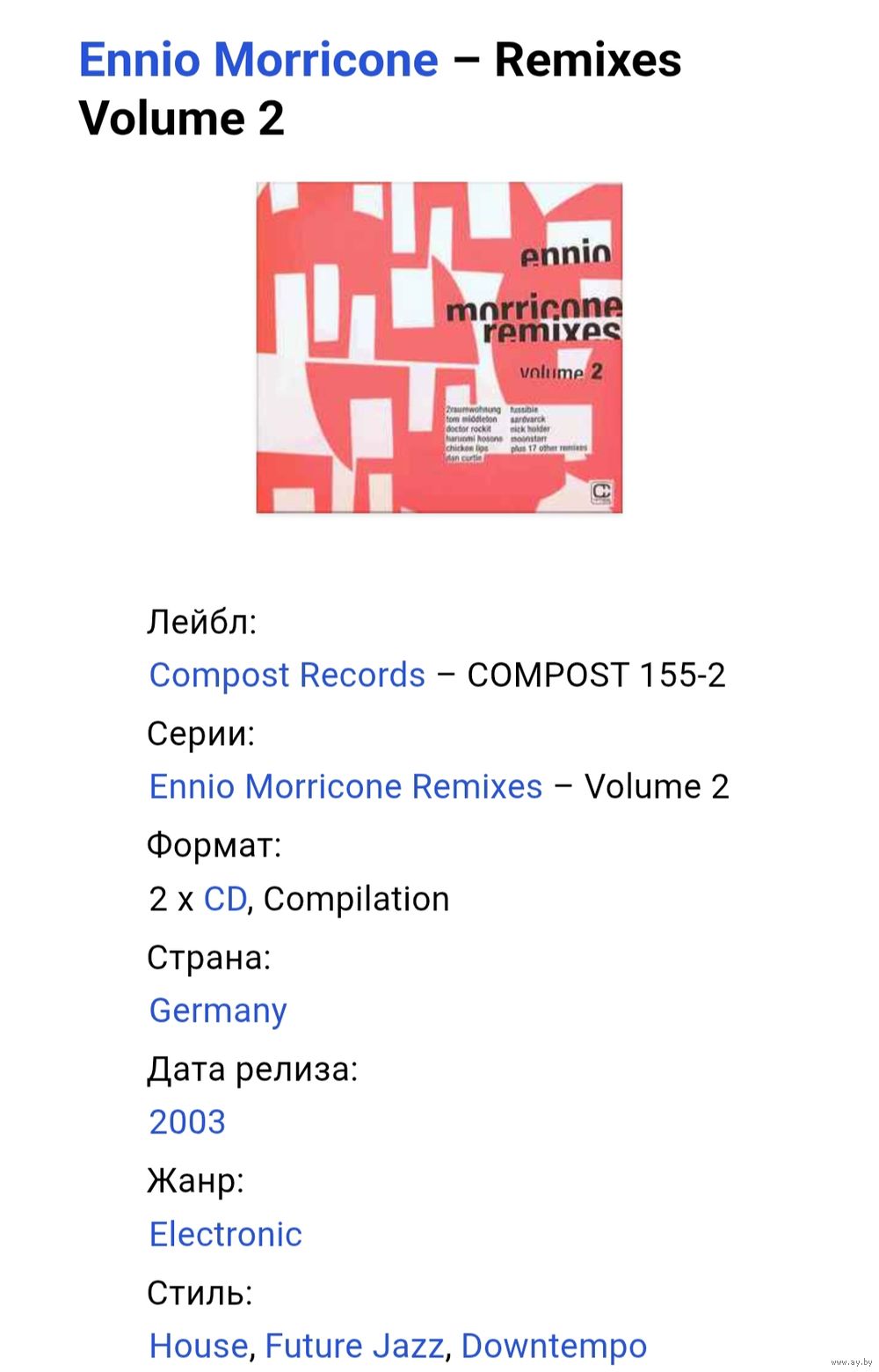 CD Ennio Morricone – Remixes Volume 2- 2003 2 CD