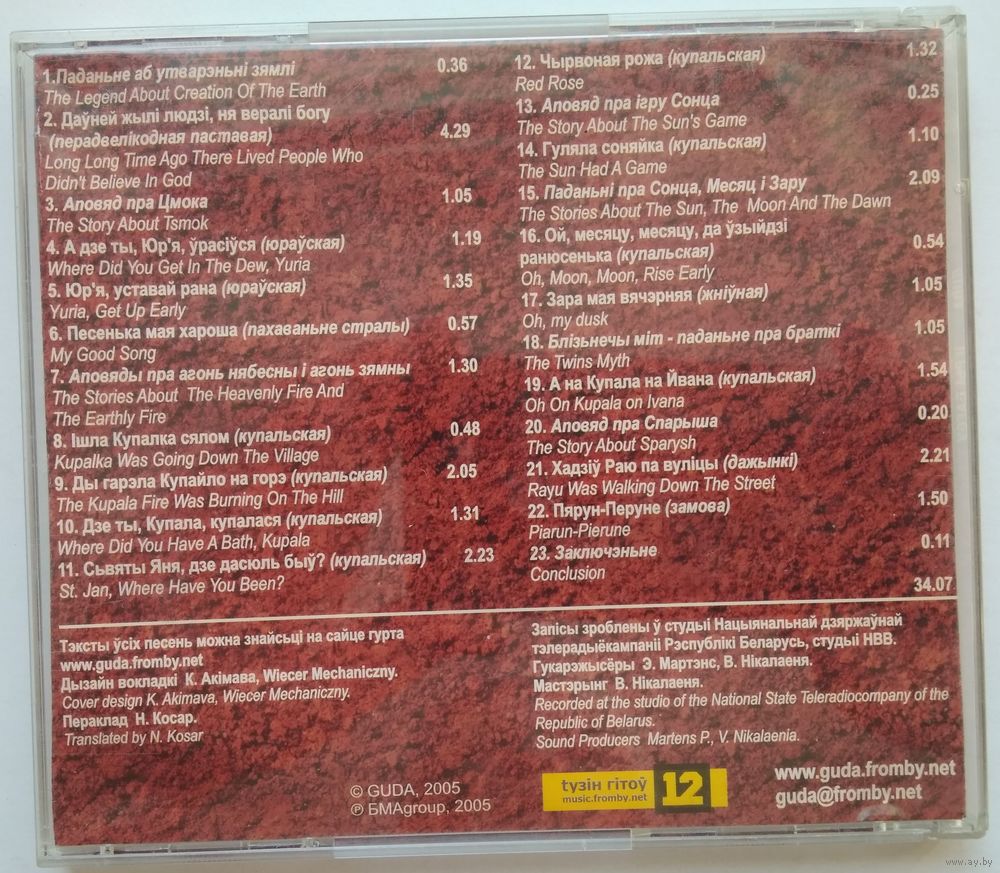 Запісы зроблены ў студыі Нацыянальнай дзяржаўнай тэлерадыёкампаніі Рэспублікі Беларусь, студыі НВВ. Гукарэжысёры: Э. Мартэнс, В. Нікалаеня. (Recorded at the studio of the National State Teleradiocompany of the Republic of Belarus. Sound Producers: Martens P., V. Nikalaenia.)