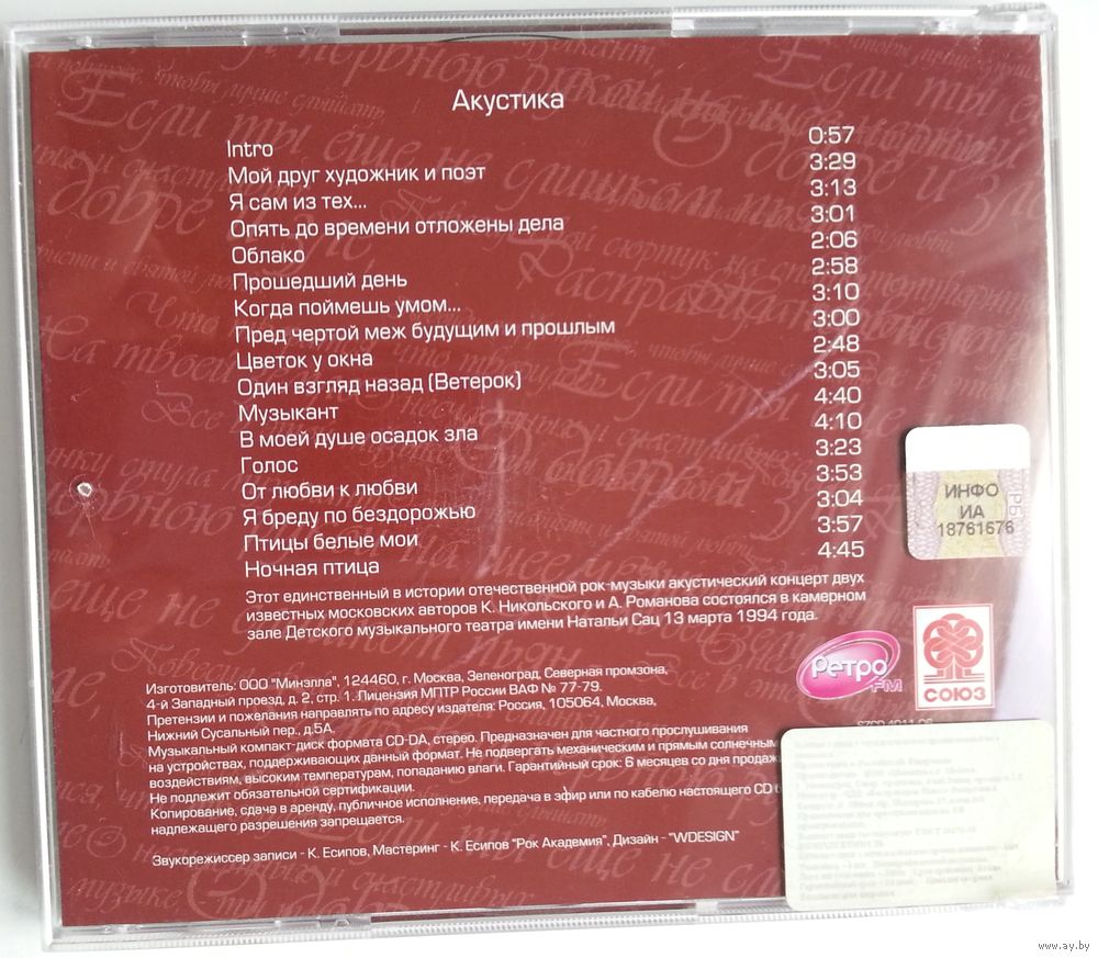 Этот единственный в истории отечественной рок-музыки акустический концерт двух известных московских авторов К. Никольского и А. Романова состоялся в камерном зале Детского музыкального театра имени Натальи Сац 13 марта 1994 года.