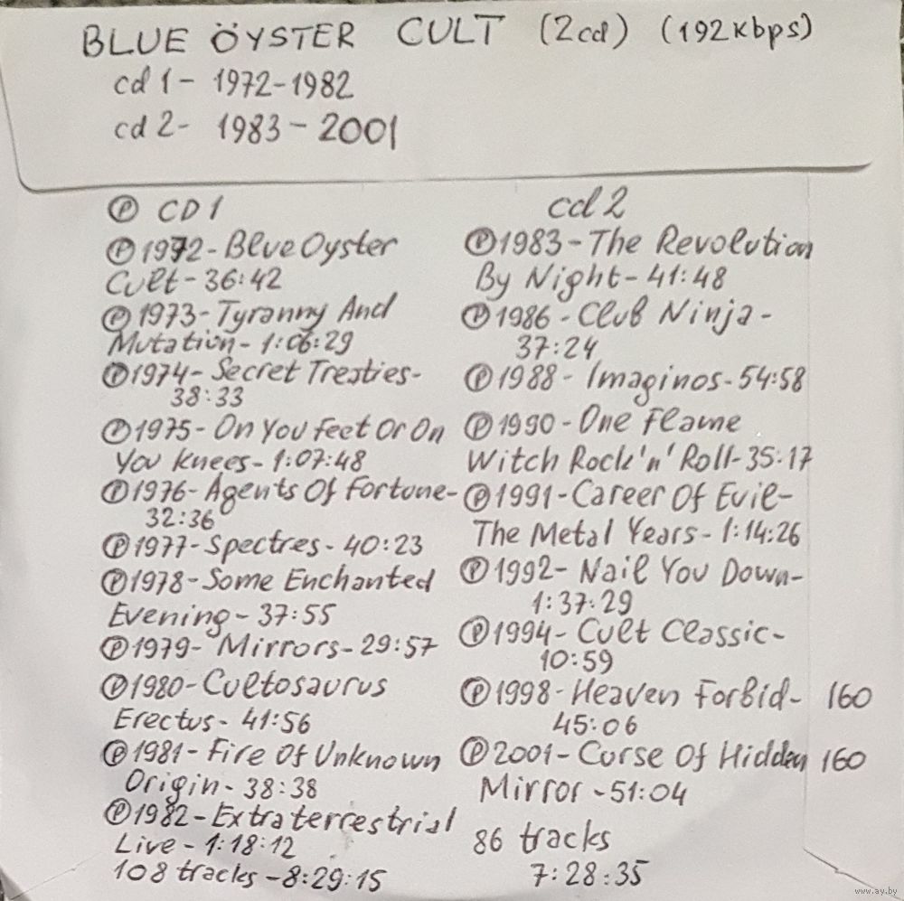 Контент см. фото конверта. При наличии таковых в треки вшиты обложки альбомов. Качество 320 kbps (если напротив названия альбома не указано иное). Покупателям, совершившим покупки на сумму от 50 до 100 руб. скидка 5%, от 101 до 200 руб. - 10%, более 201 руб. - 20%. Заказы на сумму менее 5 руб. с 2024 г. не высылаю. Ознакомиться с творчеством можно здесь: https://musify.club/artist/blue-oyster-cult-4287/releases