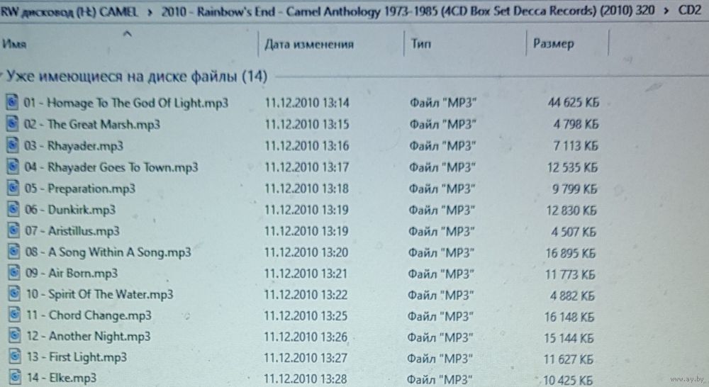 Контент см. фото. При наличии таковых в треки вшиты обложки альбомов. Качество 320 kbps (если напротив названия альбома не указано иное). Покупателям, совершившим покупки на сумму от 50 до 100 руб. скидка 5%, от 101 до 200 руб. - 10%, более 201 руб. - 20%. Заказы на сумму менее 5 руб. с 2024 г. не высылаю. Ознакомиться с творчеством можно здесь: https://musify.club/artist/meat-loaf-26834/releases; https://musify.club/artist/camel-20088/releases.