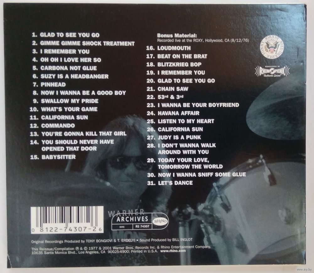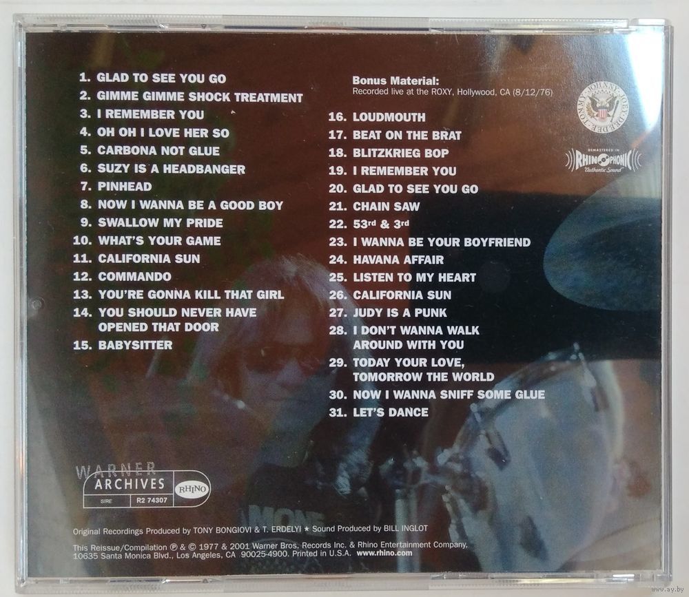 "Glad To See You Go", "Gimme Gimme Shock Treatment", "I Remember You", "Oh Oh I Love Her So", "Carbona Not Glue", "Suzy Is A Headbanger", "Pinhead", "Now I Wanna Be A Good Boy", "Swallow My Pride", "What's Your Game", "Commando", "You're Gonna Kill That Girl", "You Should Never Have Opened That Door", "Babysitter" © 1977 WB Music Corp (ASCAP), Taco Tunes Inc. (ASCAP), Bleu Disque Music Co. Inc. (ASCAP)