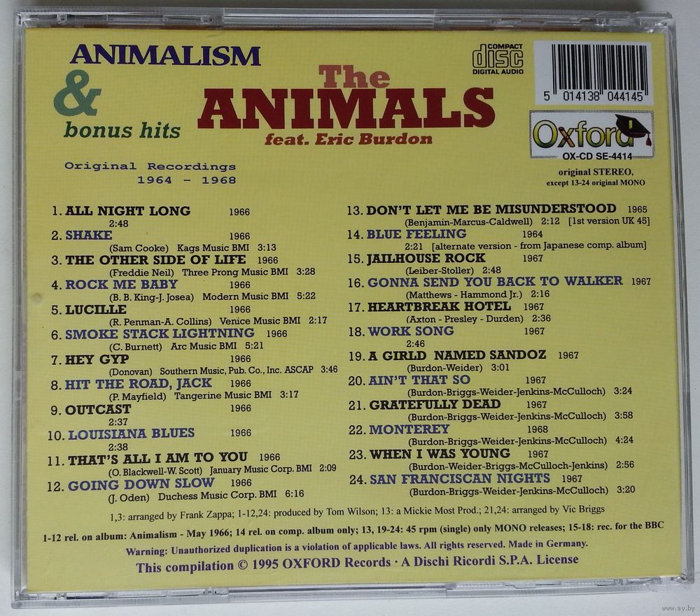 1-12 rel. on album: 'Animalism' - May 1966; 14 rel. on comp. album only; 13, 19-24: 45 rpm (single) only MONO releases; 15-18: rec. for the BBC