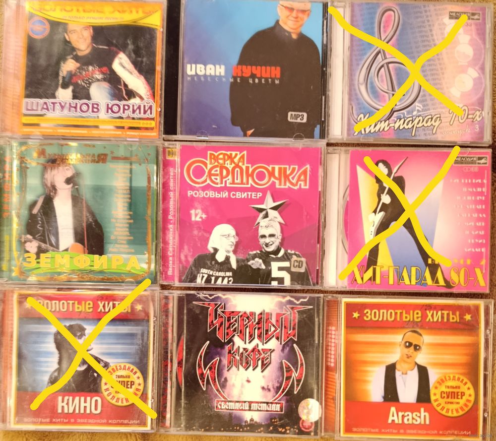 CD Юрий Шатунов, Иван Кучин, Верка Сердючка, Arash, Черный кофе, Земфира. Цена за один диск