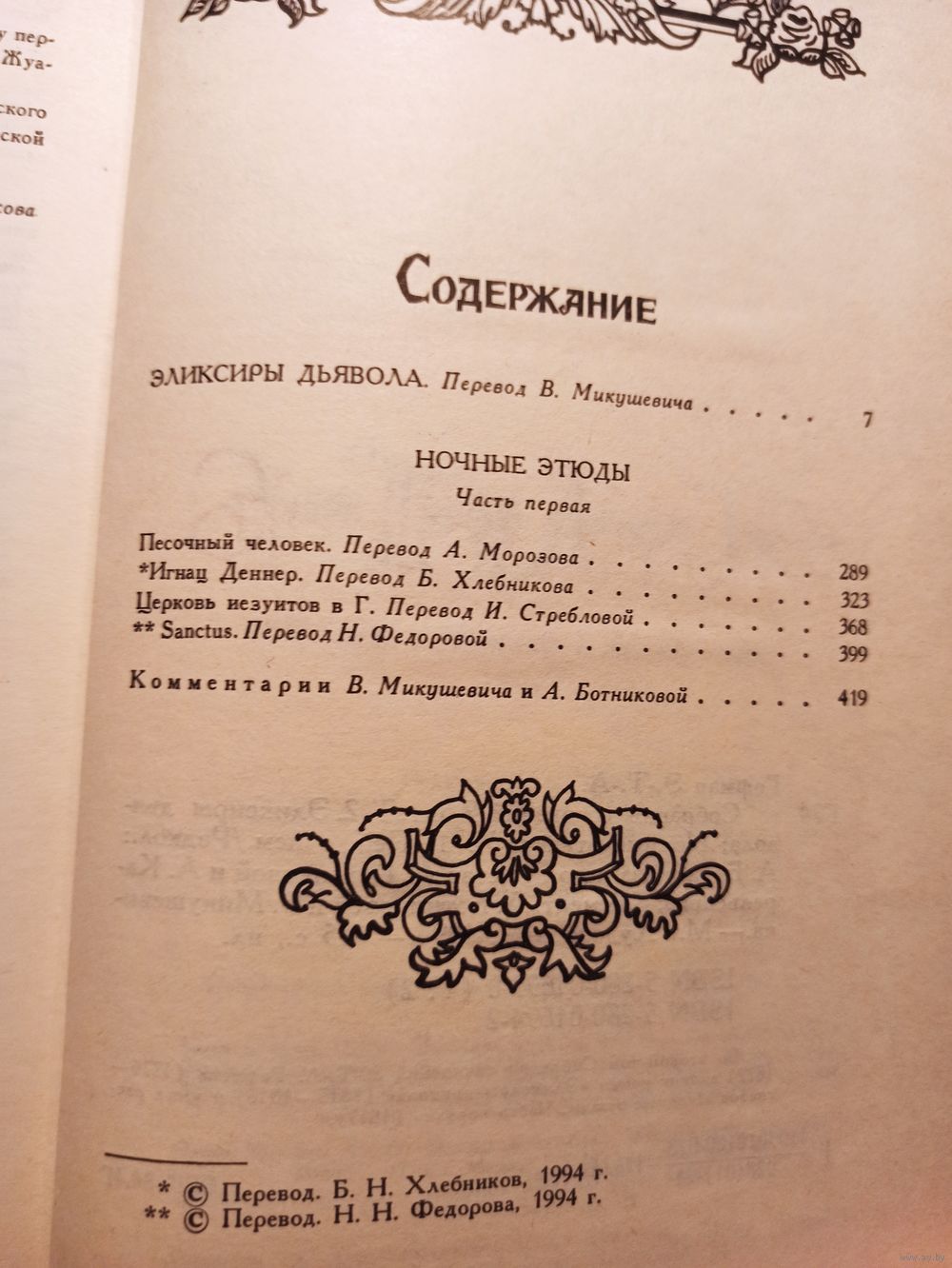 Во второй том Собрания сочинений Э.-Т.-А. Гофмана входит роман "Эликсир дьявола" (1815-1816) и цикл рассказов "Ночные этюды. Часть первая" (1817).