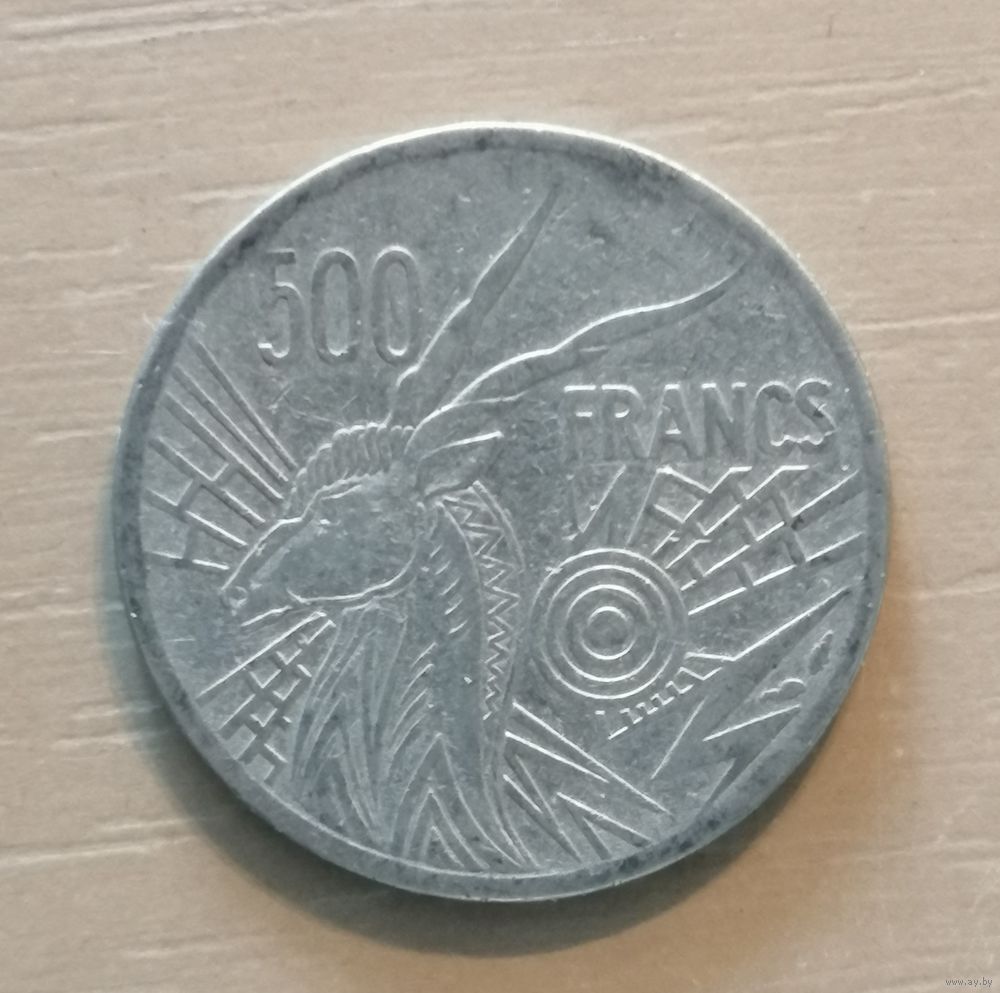 Центральная Африка (BEAC) 500 франков, 1977 г., отметка на аверсе "E" - Камерун, KM# 12